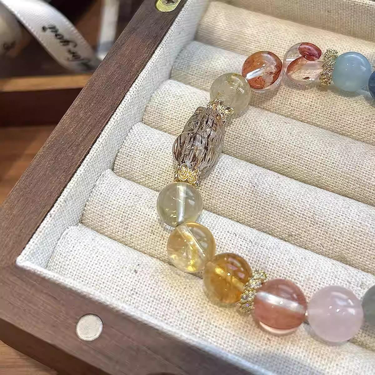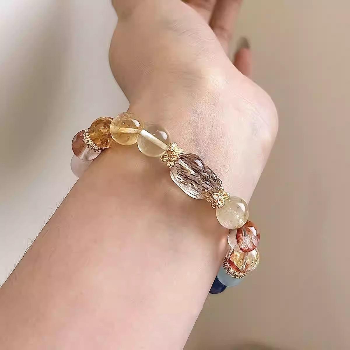 彩虹多宝水晶手串女天然发晶黄水晶招财黑金超貔貅手链礼物