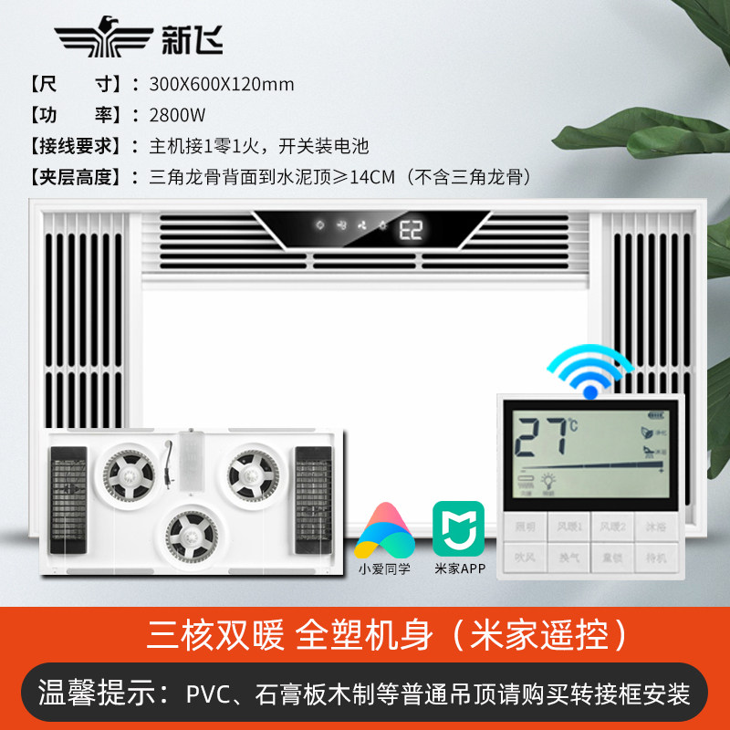 新飞风暖浴霸三核集成吊顶灯排气扇照明一体机卫生间取暖器暖风机