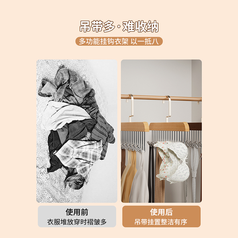 吊带衣架多功能内衣背心收纳神器家用宿舍实木挂钩波浪晾衣架塑料