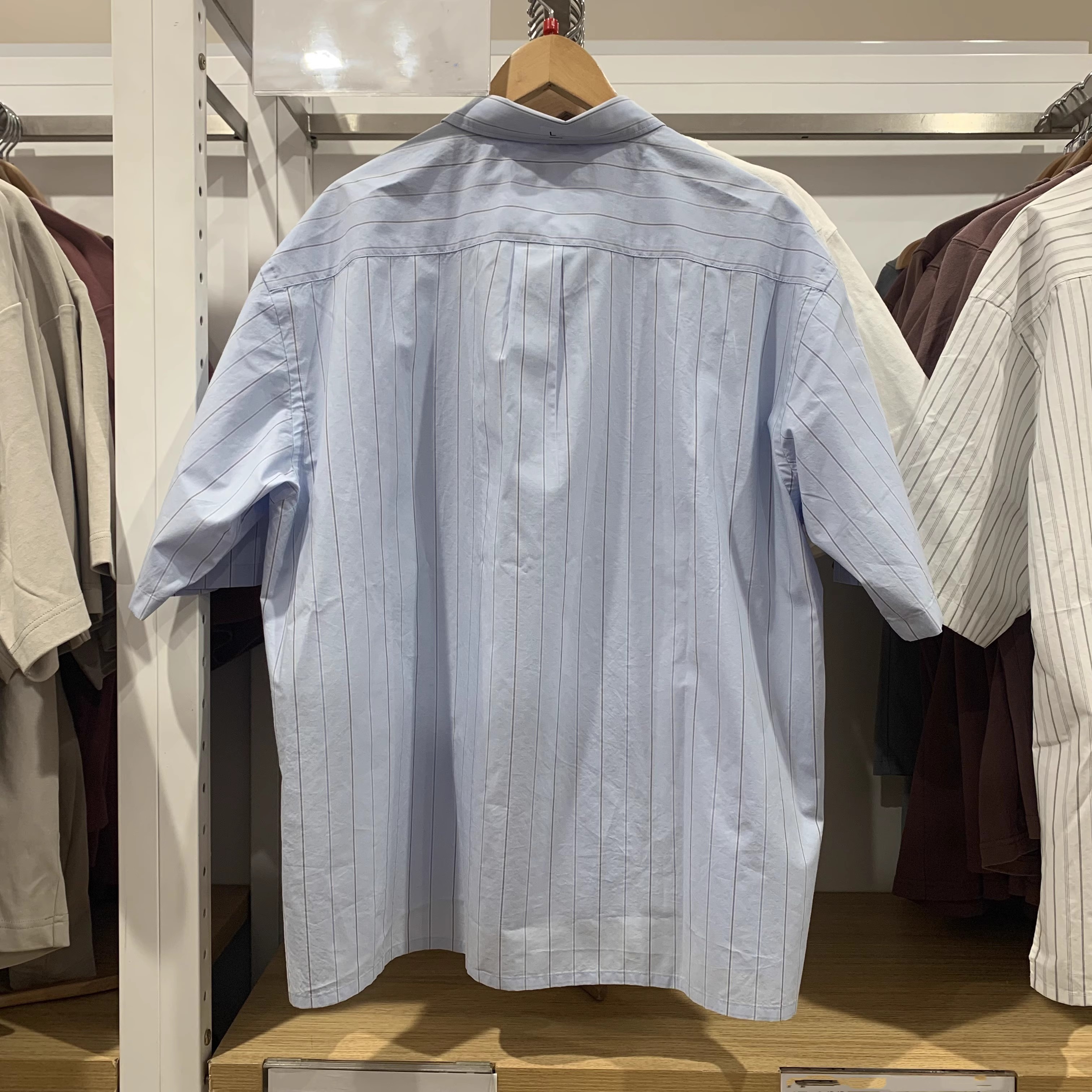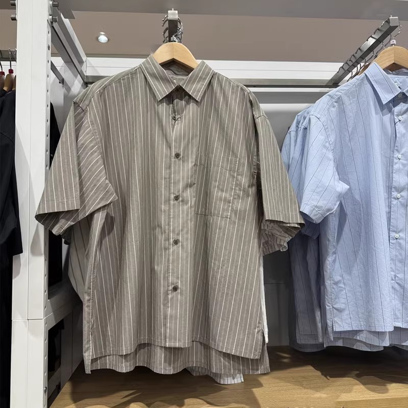 477648/477643 试衣间同款夏款男装女装宽松条纹短袖衬衫休闲衬衣