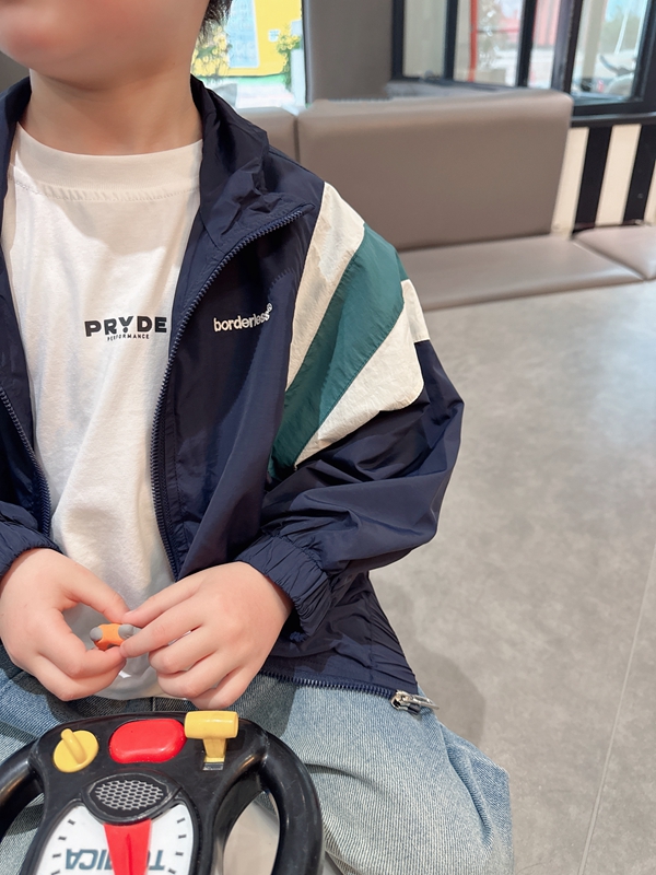 洋气拼色男童薄软壳冲锋衣外套童装儿童春秋季蝙蝠袖宽松拉链上衣