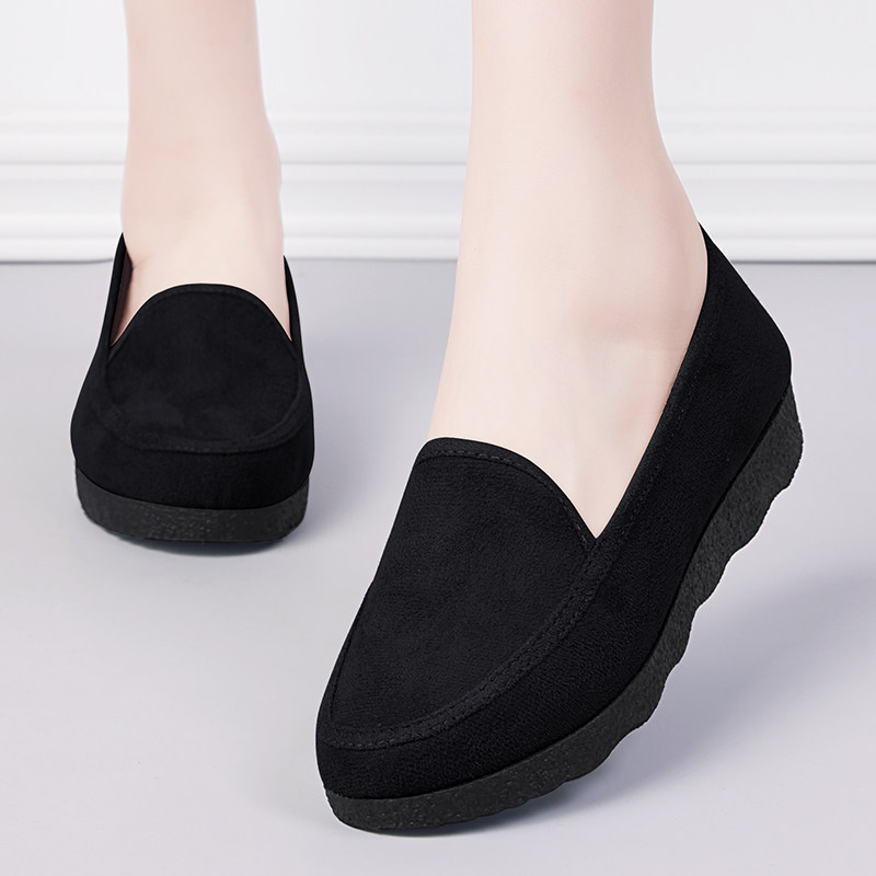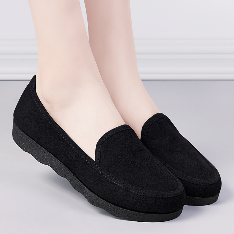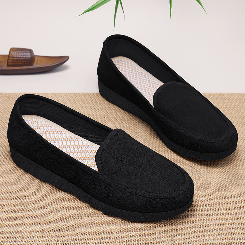 老北京布鞋女鞋新款一脚蹬豆豆鞋软底不累脚防滑黑色正品工作鞋子