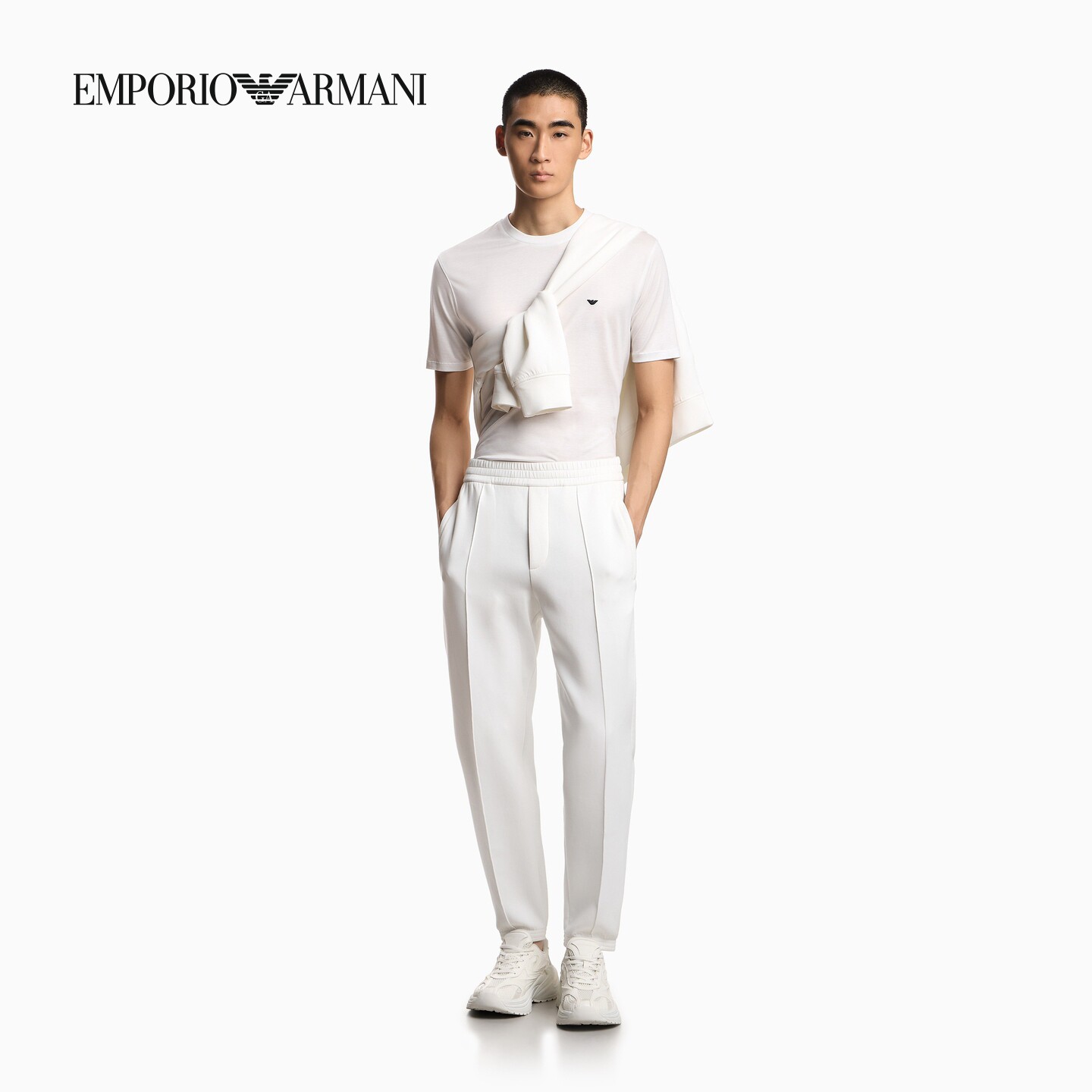 EMPORIO ARMANI/阿玛尼春夏新款男士宽松锥形松弛感弹力运动卫裤