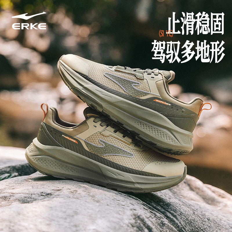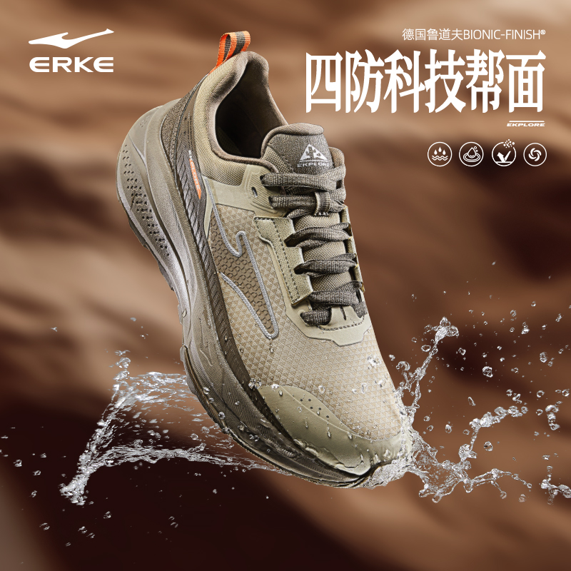 鸿星尔克肆野跑步鞋男黑色冬季防水男鞋软底减震运动鞋耐磨登山鞋
