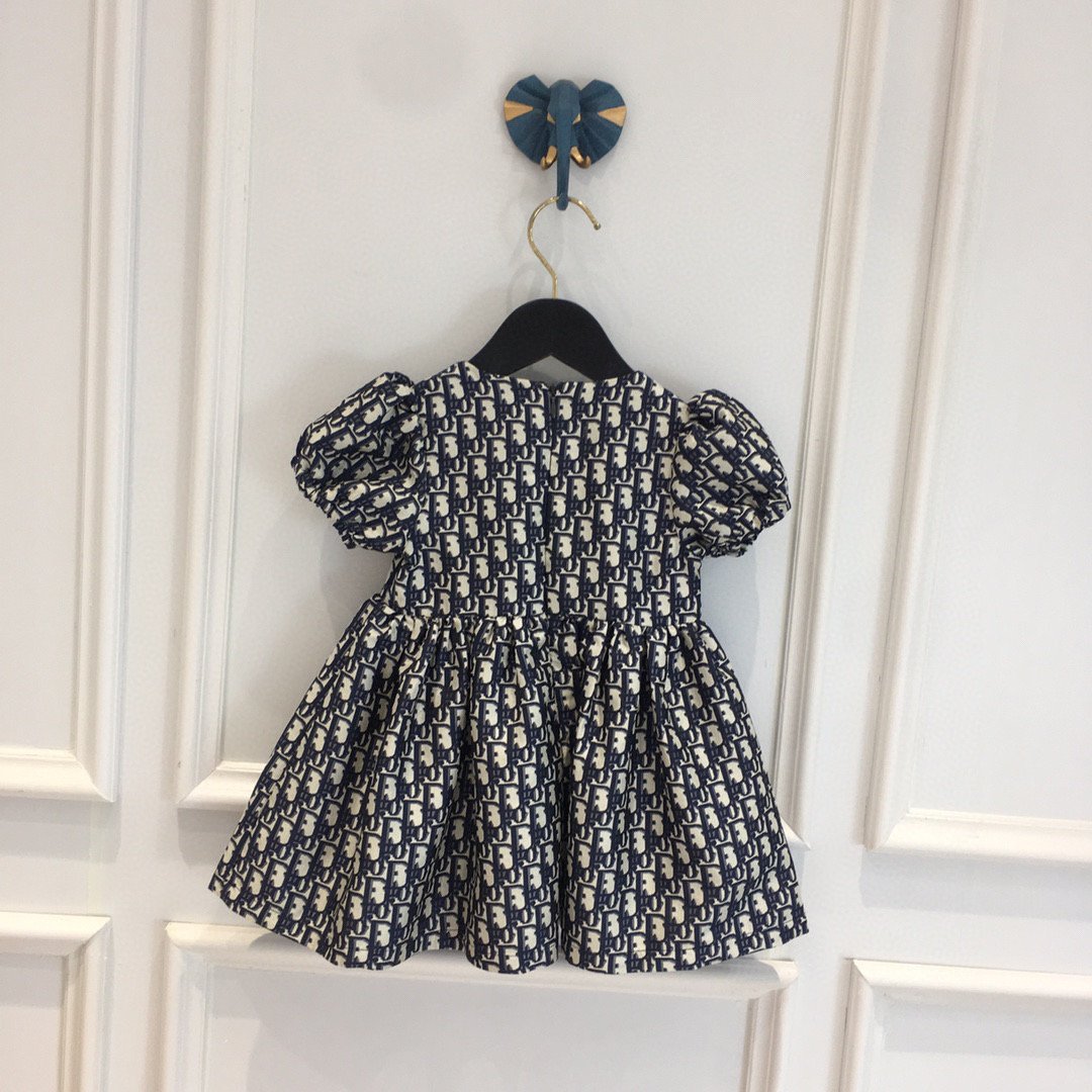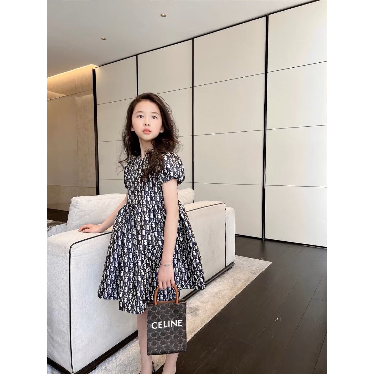 迪l士尼女童法式连衣裙春夏新款儿童满印字母洋气公主裙泡泡袖时