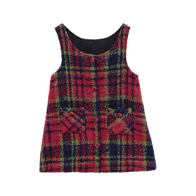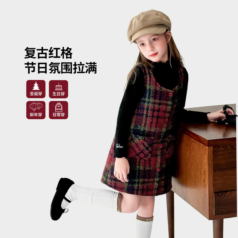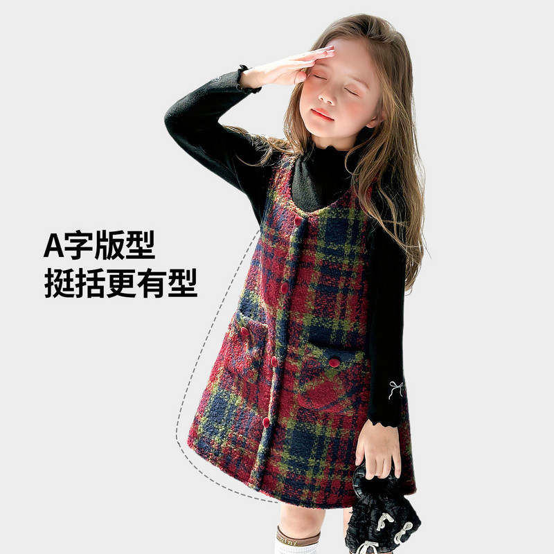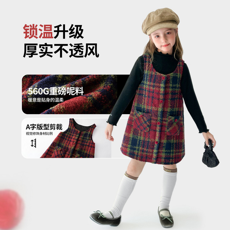 图图小象童装女童新年款毛呢背心裙2026儿童冬季新款格纹羊毛裙