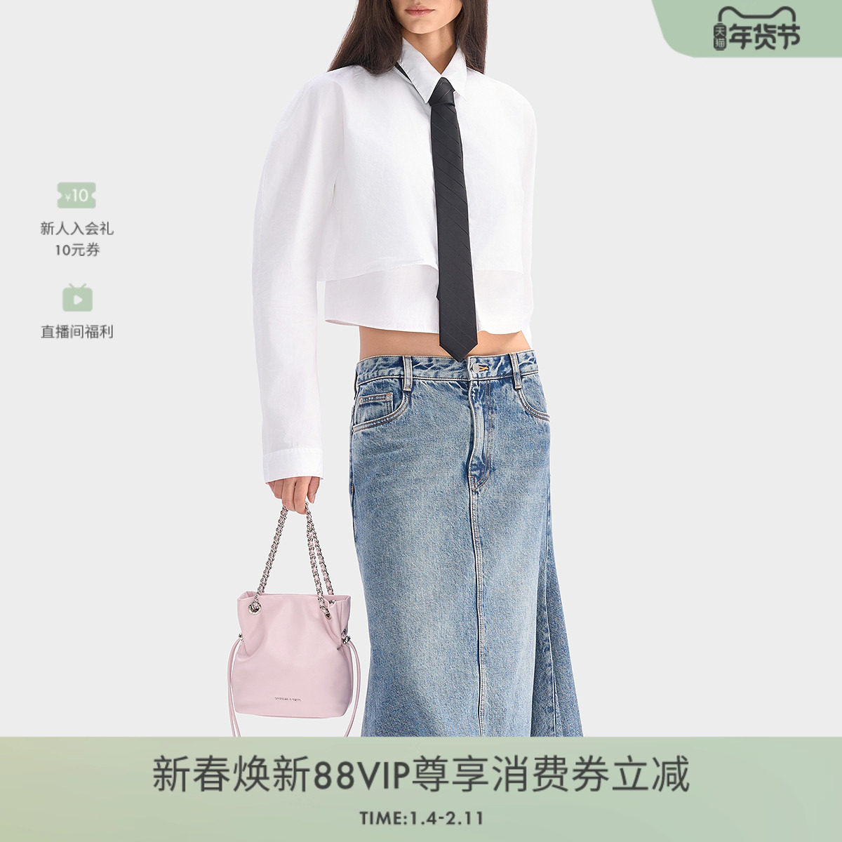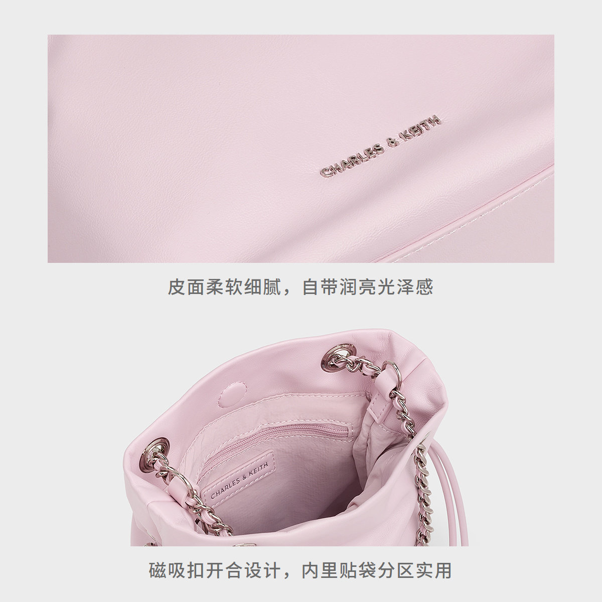 CHARLES&KEITH25新款CK2-80151536抽绳链条手提托特包福袋包小号