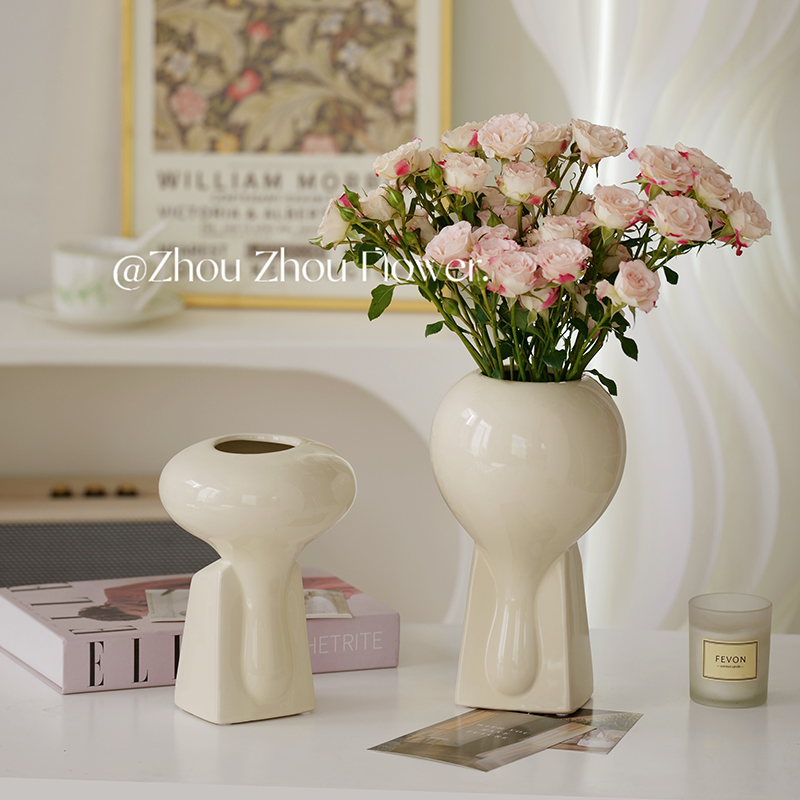 设计师款陶瓷花瓶摆件高级感客厅水养鲜花玫瑰郁金香U插花小众ins