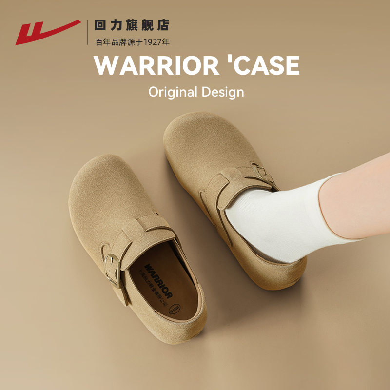 回力勃肯鞋女2025冬季新款一脚蹬单鞋加绒包头拖鞋内增高女款鞋子