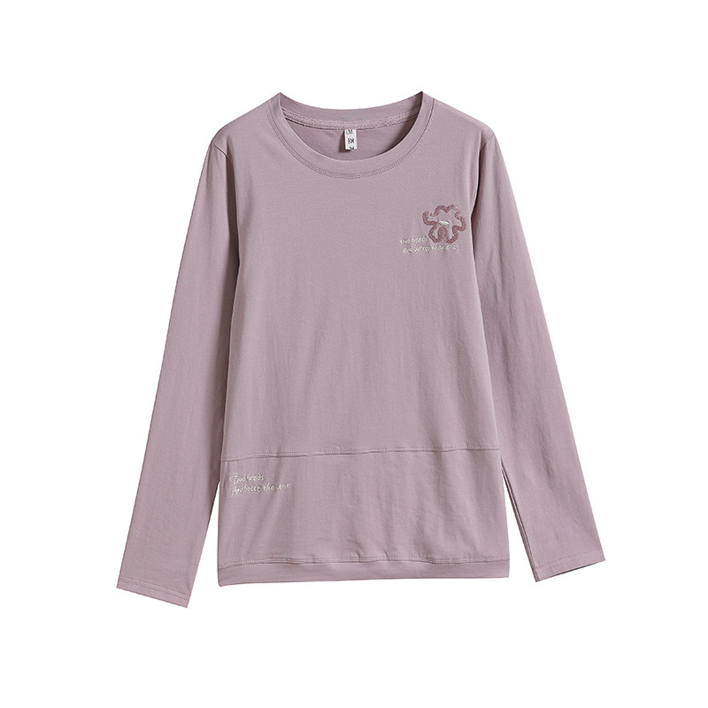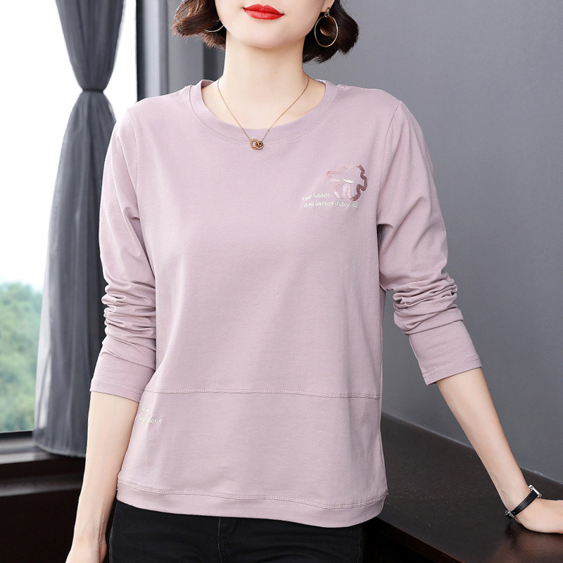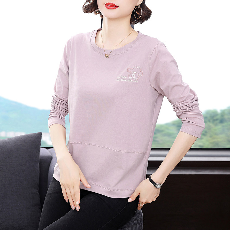 纯棉长袖t恤女 2025春秋装新款大码休闲上衣中老年妈妈秋衣打底衫