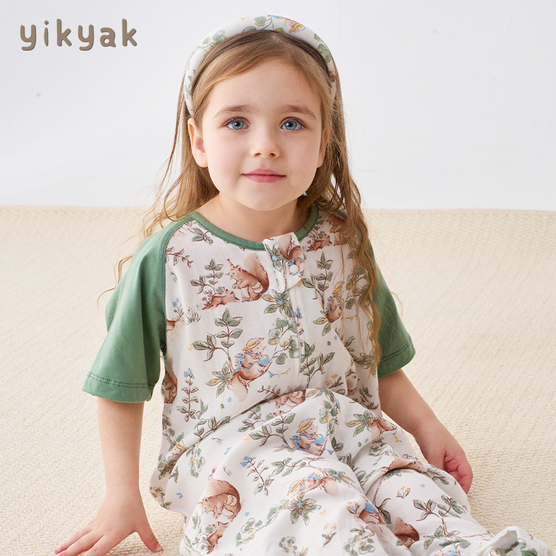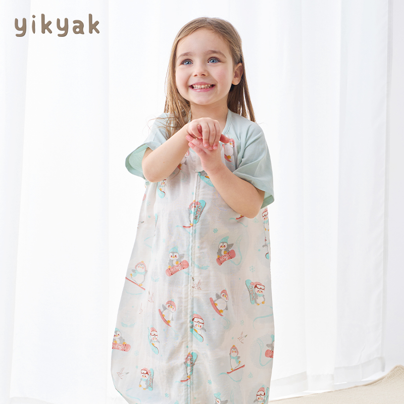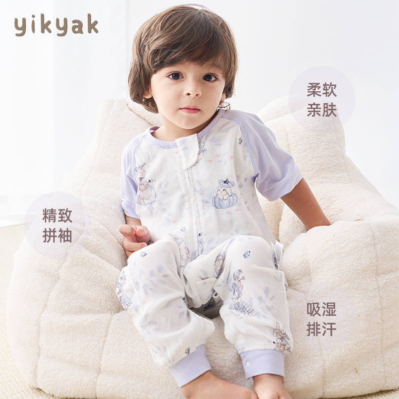 yikyak婴儿童拼短袖分腿防踢被睡袋夏季宝宝睡衣防惊跳