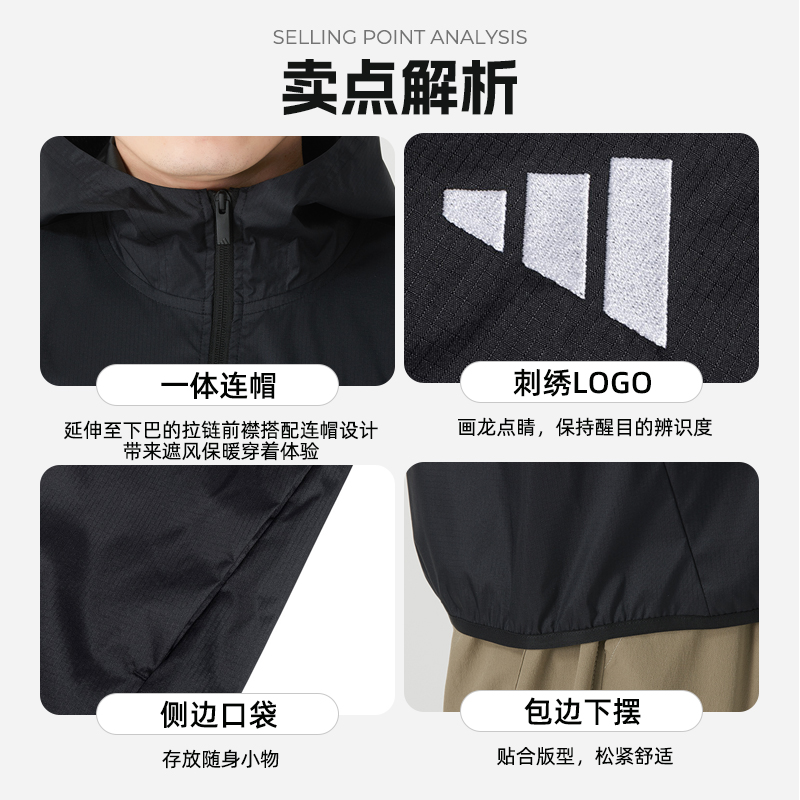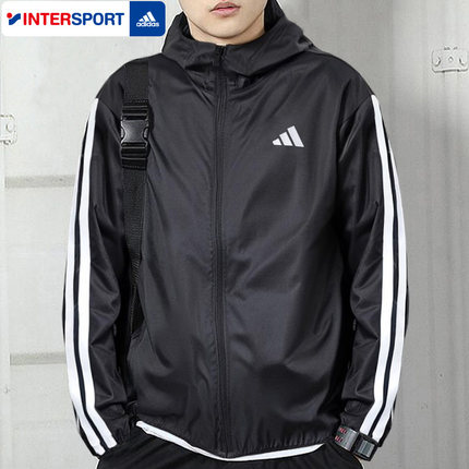 阿迪达斯官方正品外套男秋季新款连帽梭织运动服速干透气休闲夹克