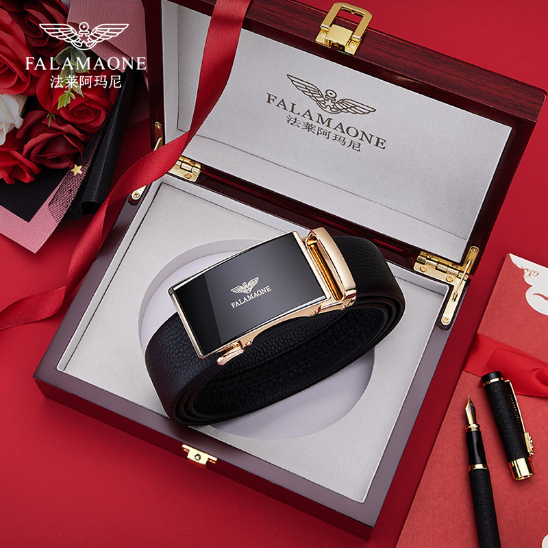 正品法莱阿玛尼皮带男真皮高档品牌纯牛皮休闲商务正装自动扣腰带