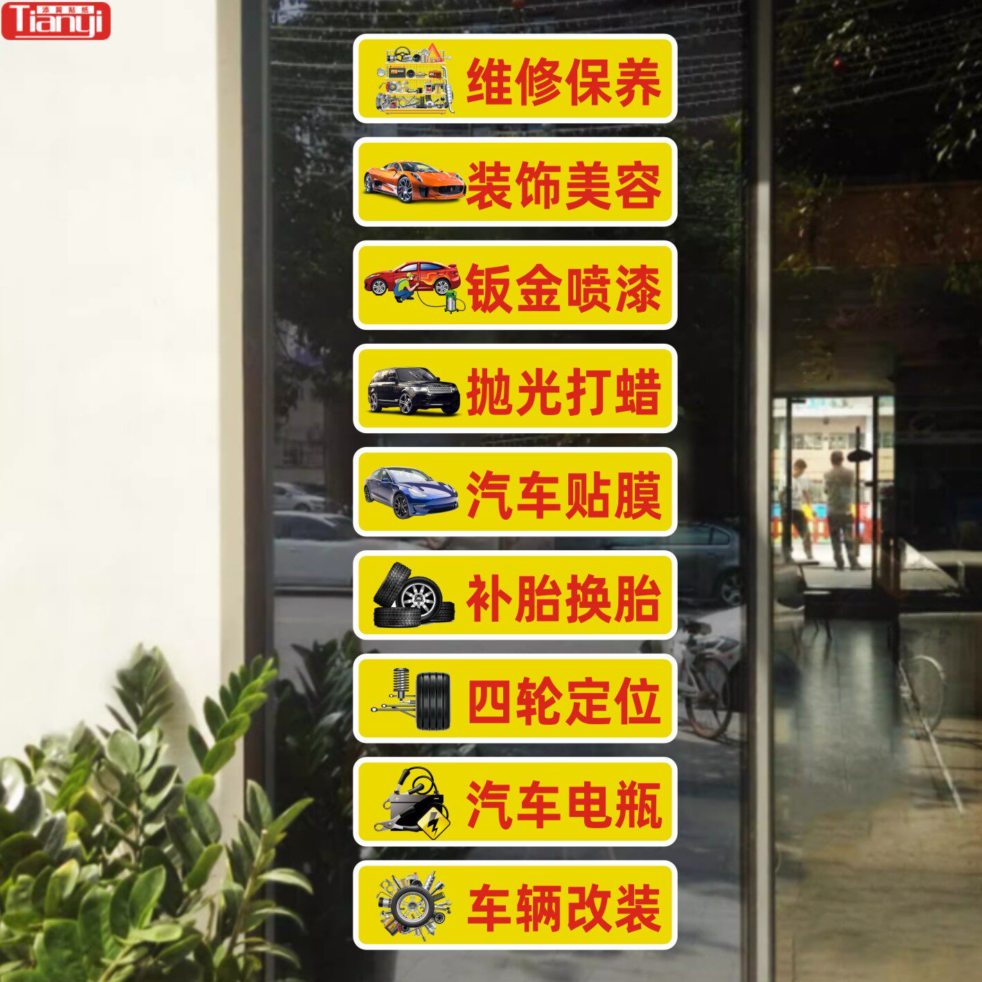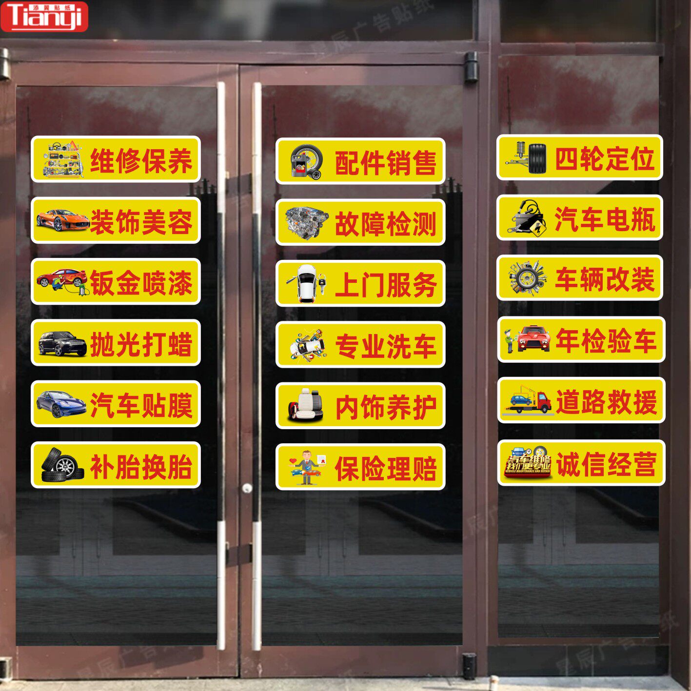 汽车维修保养美容4S店经营项目轮胎配件广告贴字玻璃门醒目墙面贴