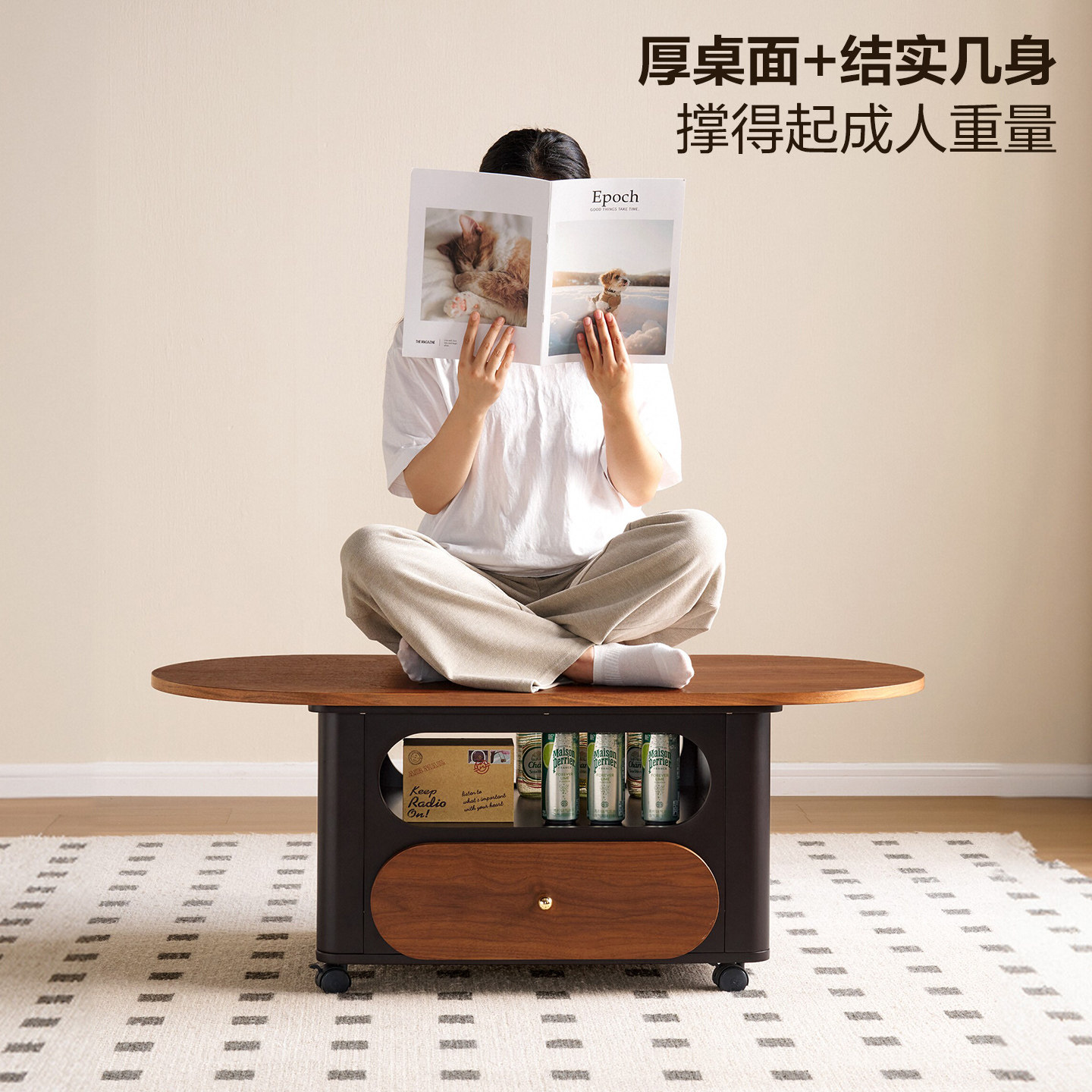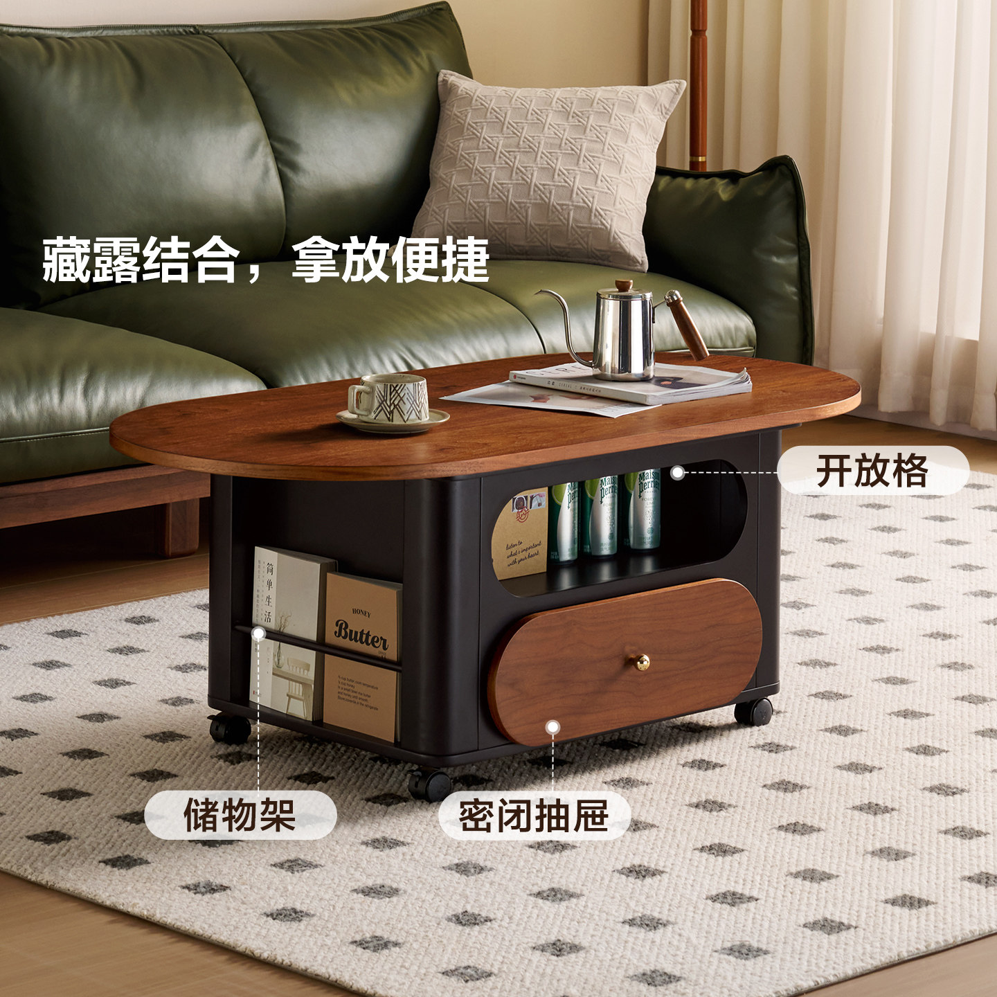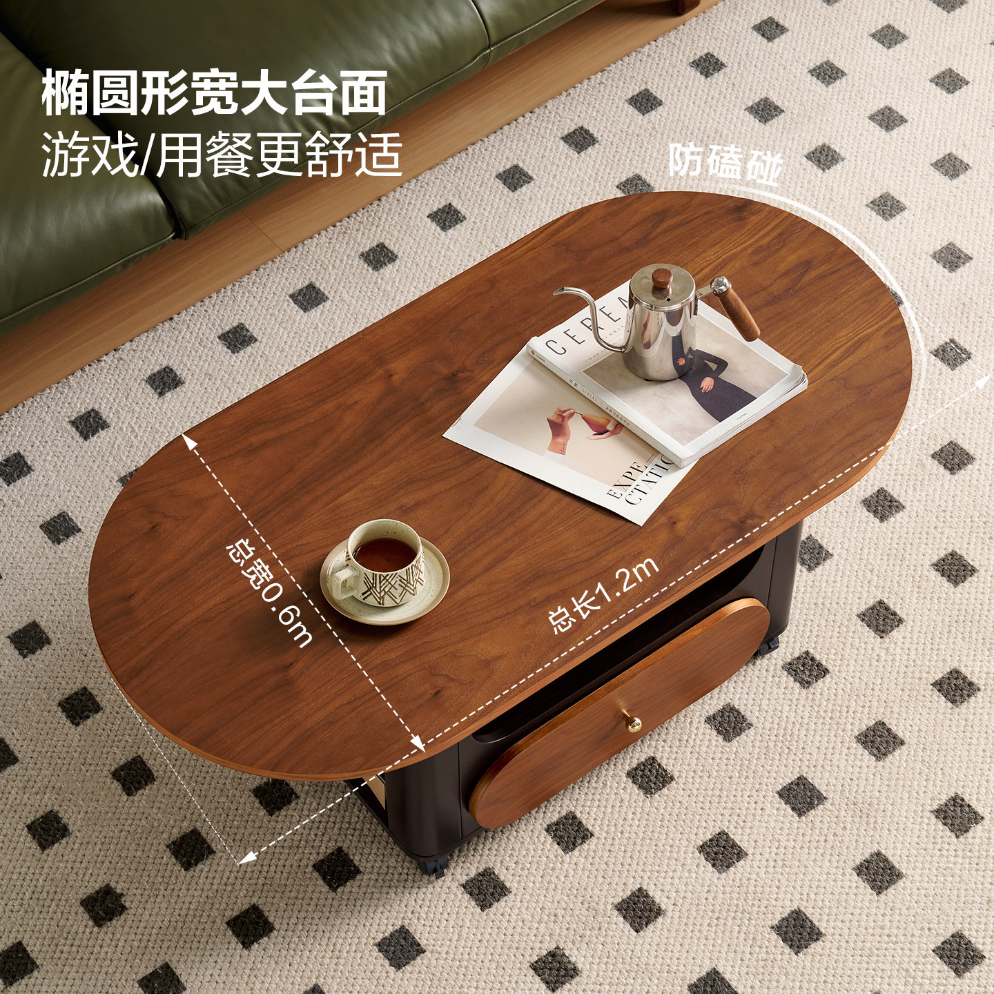 全友家居复古风客厅家用小户型茶几桌2025新款可移动收纳小推车