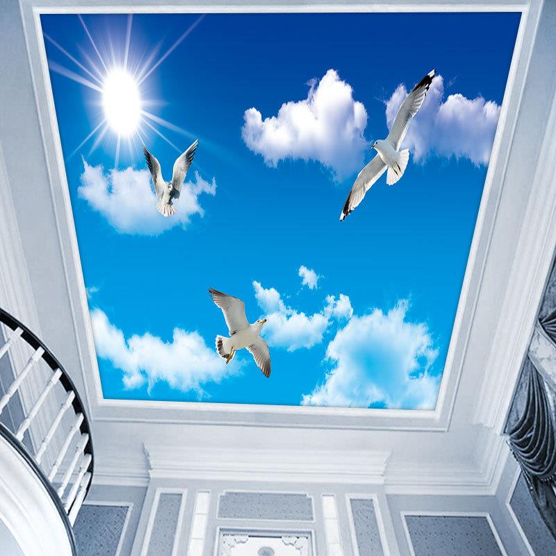 蓝天白云墙纸天花板吊顶壁纸卧室棚顶3D壁画客厅过道屋顶天空墙布