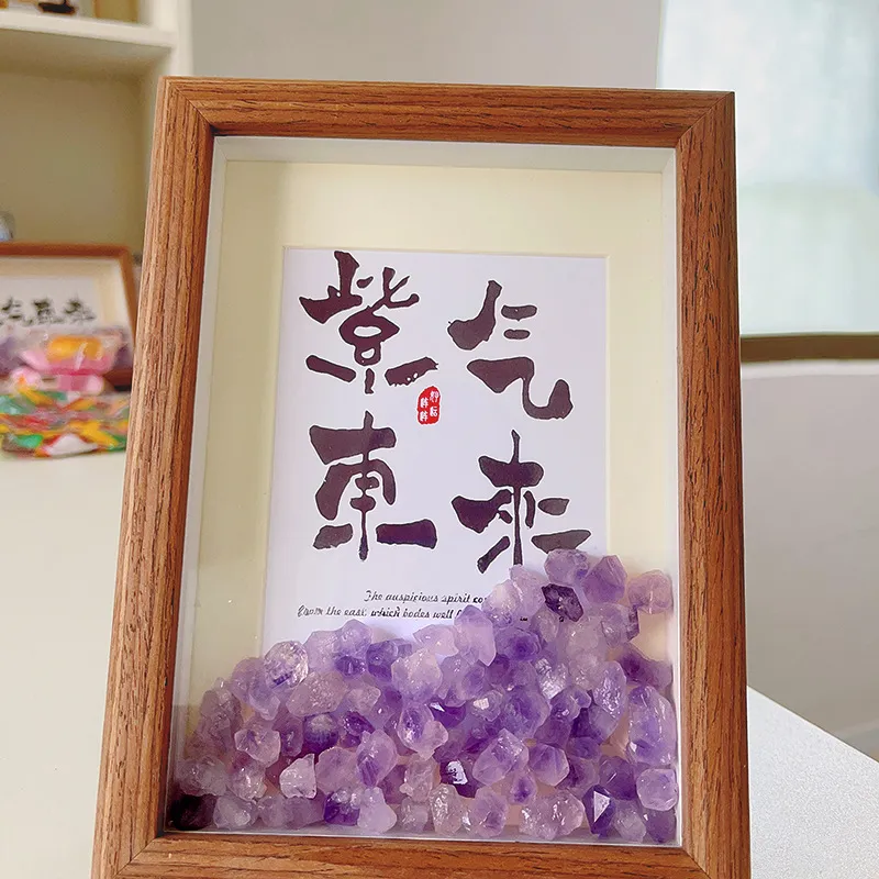 紫气东来水晶原石矿石标本摆件相框乔迁礼物摆台玄关桌面装饰挂画