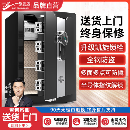 【明星沙溢代言】大一保险柜家用办公商务保险箱60cm夹万密码指纹防盗床头柜保管箱办公室保险柜家用2025新款