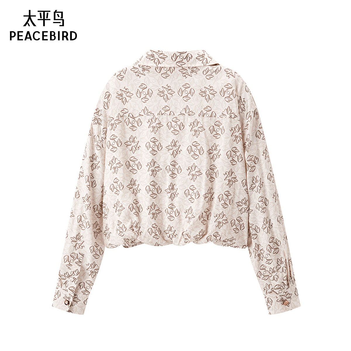 太平鸟女装年春秋季新款纹样韩版时尚休闲翻领衬衫A1CAE1505