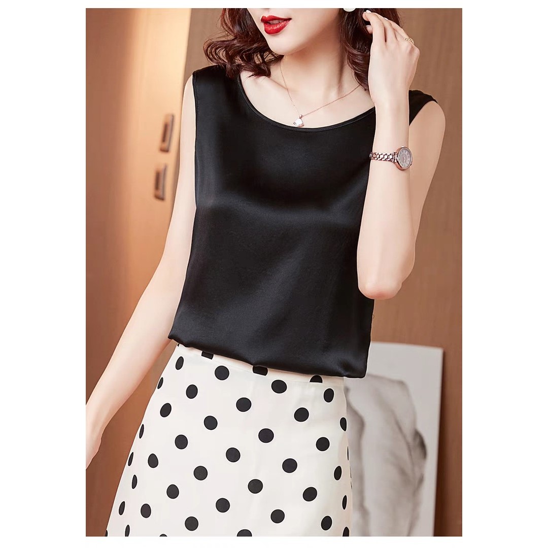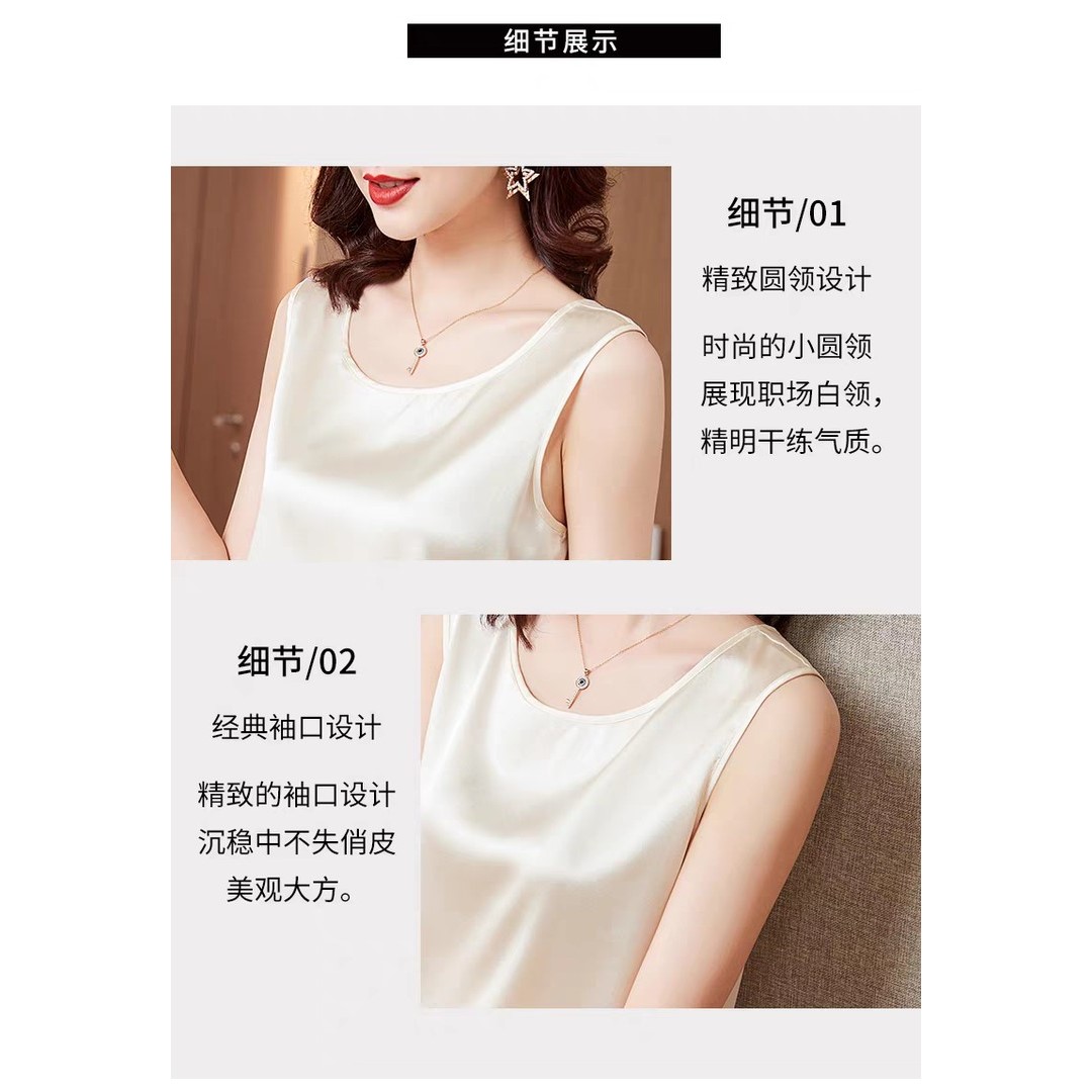 芒果女装2025新款上衣时尚休闲百搭潮流纯色无袖缎面背心打底内搭