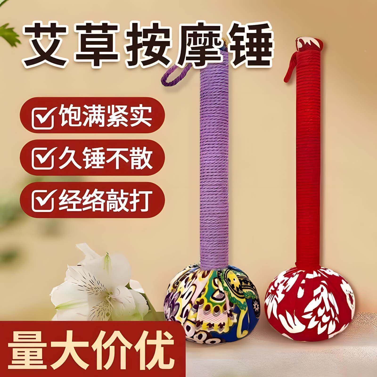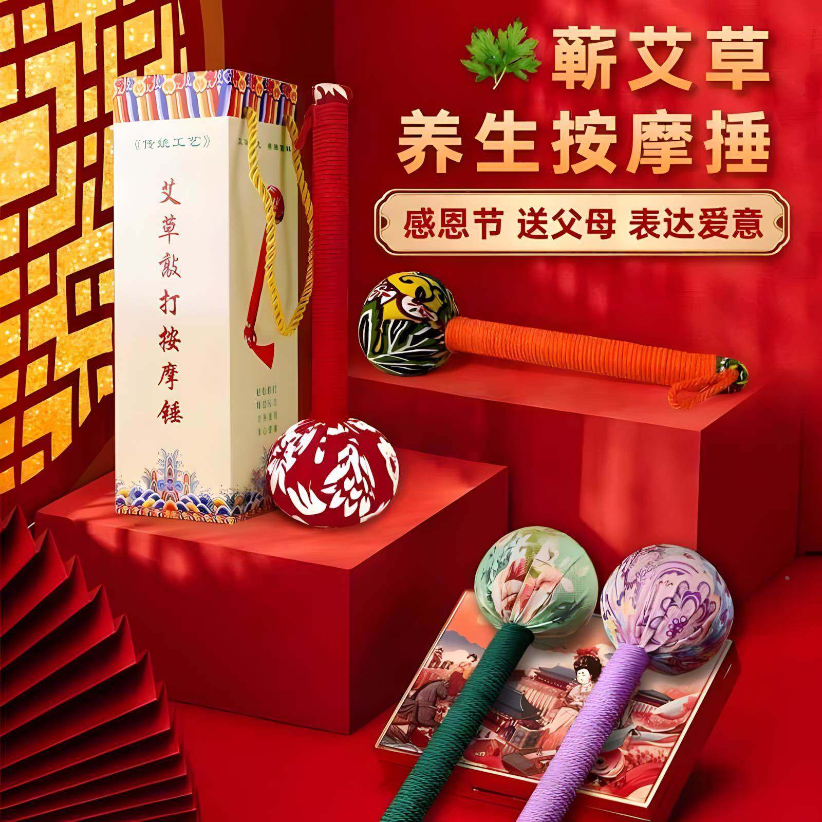 肩颈敲打艾草锤手持养生锤按摩锤腰背经络拍八虚办公居家疏通神器