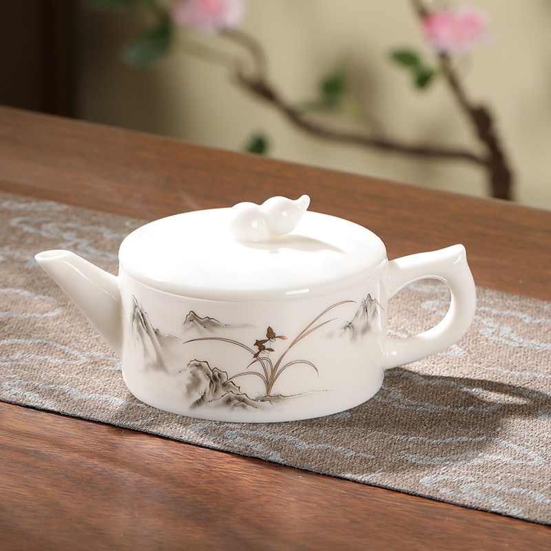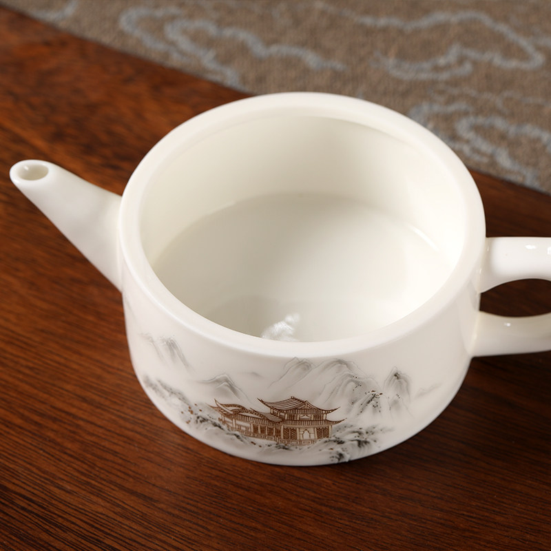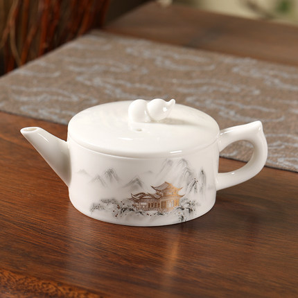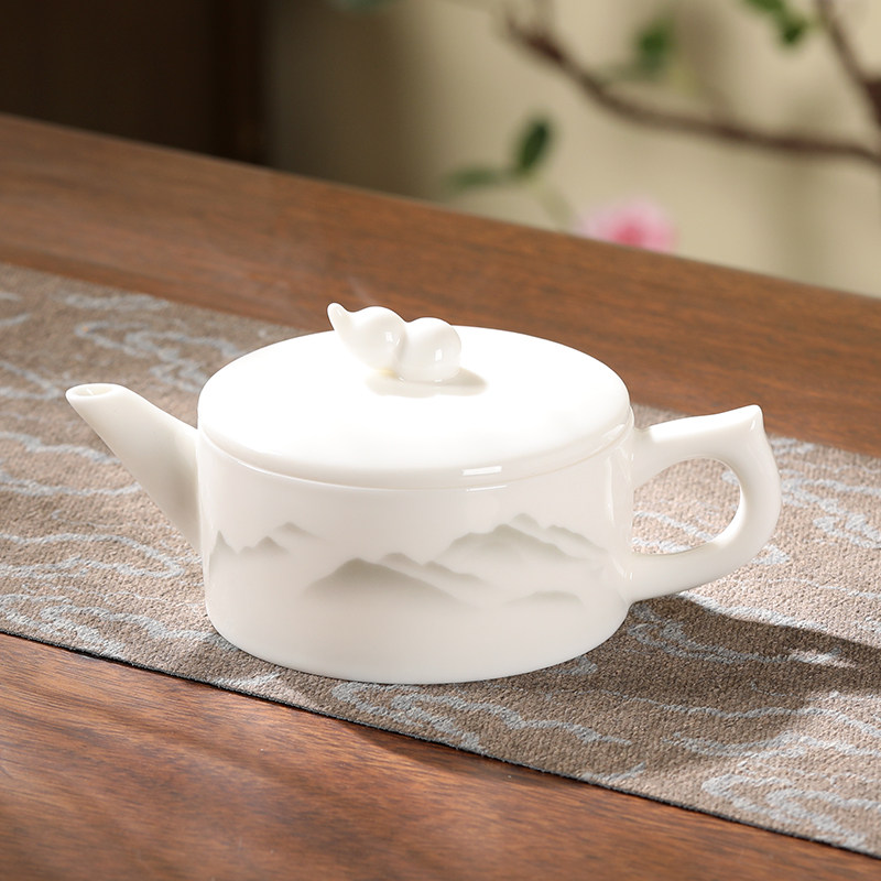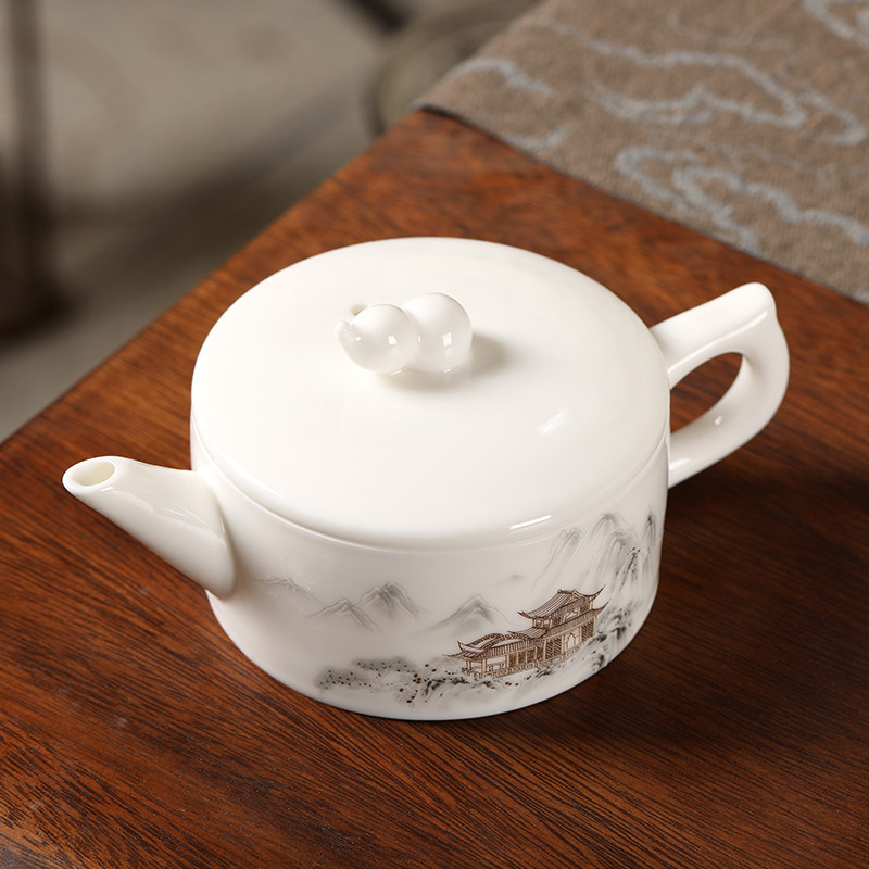 单个茶壶羊脂玉白瓷汉瓦壶茶具