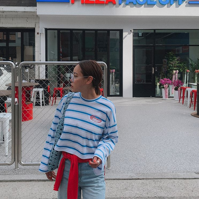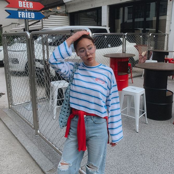 Cmy korea韩国女装代购 2025夏条纹配色打底宽松个性T恤