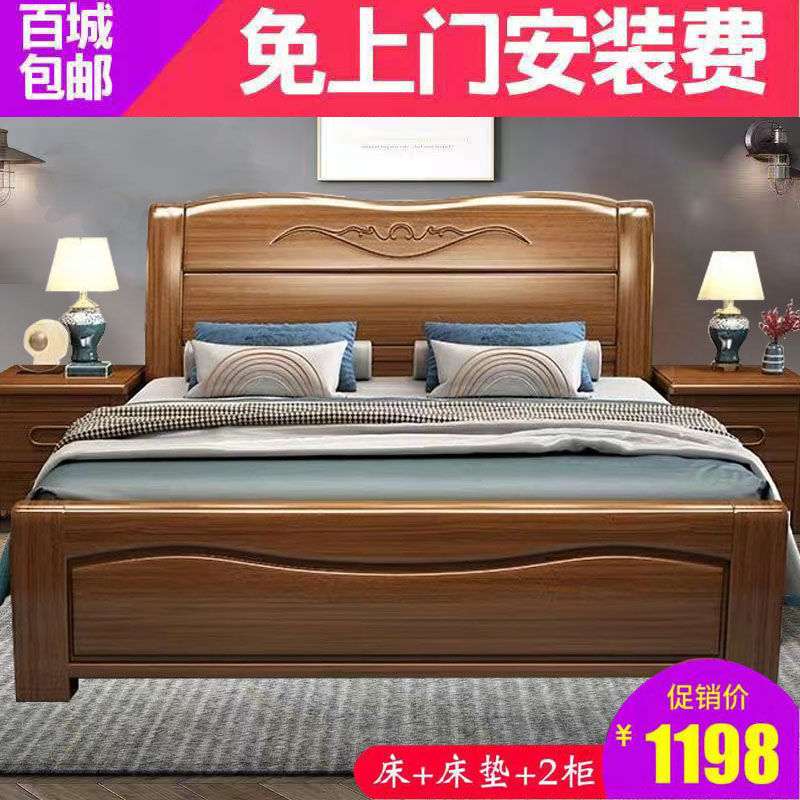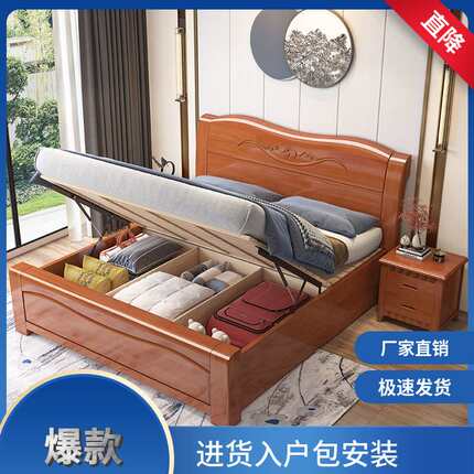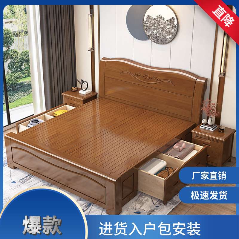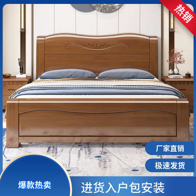 中式实木床1.8米双人床1.5米单人床主卧高箱储物床