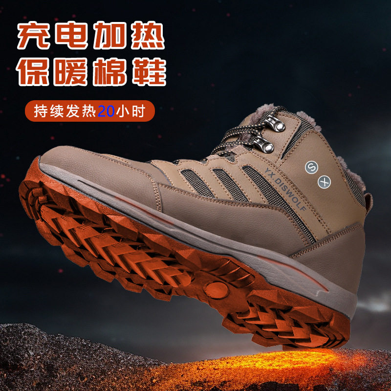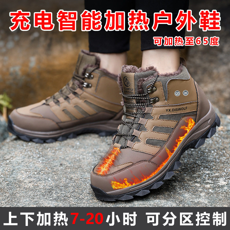 电加热鞋户外可行走发热鞋冬暖脚保暖棉鞋男女防滑雪地靴脚背高筒