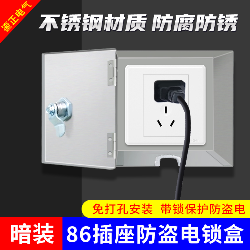 暗装开关插座不锈钢防锈防水溅箱带锁插座盒户外电动车充电防盗盒
