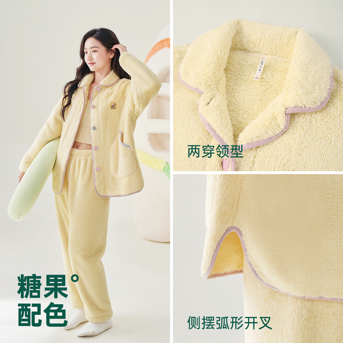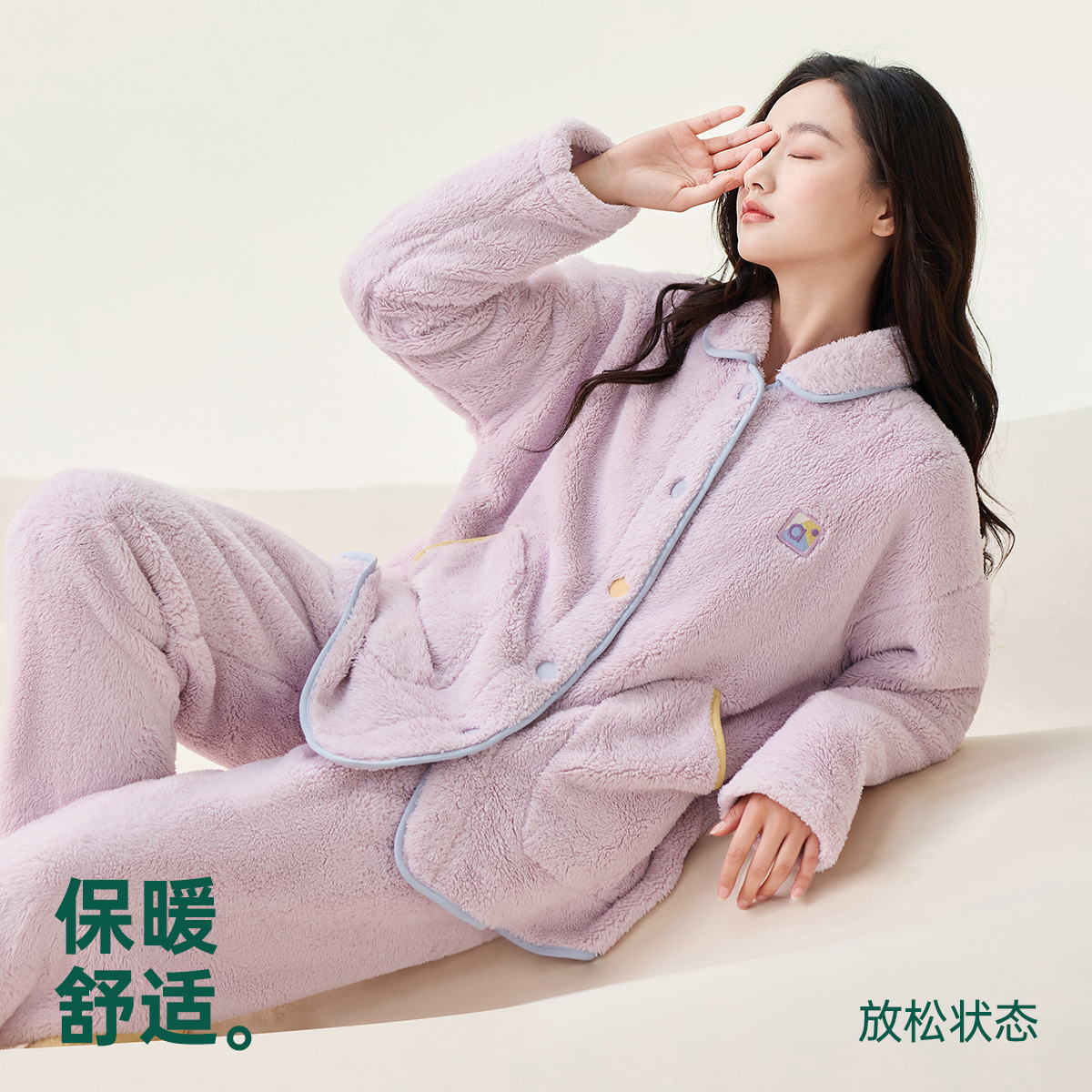 安之伴【巨保暖】简约秋冬珊瑚绒睡衣女款休闲宽松加绒家居服套装