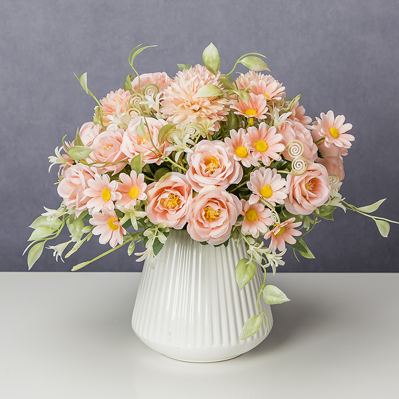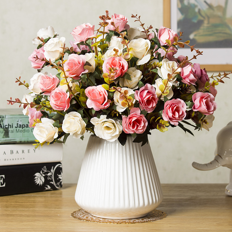 仿真客厅假花 茶几上的摆放花玫瑰摆设卧室高花艺绢花摆件品装饰
