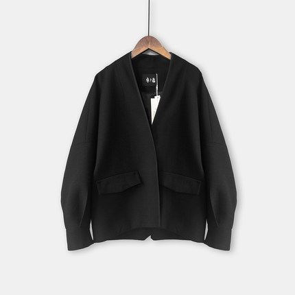 春秋新款黑色小外套女宽松长袖上衣v领开衫百搭显瘦西装西服