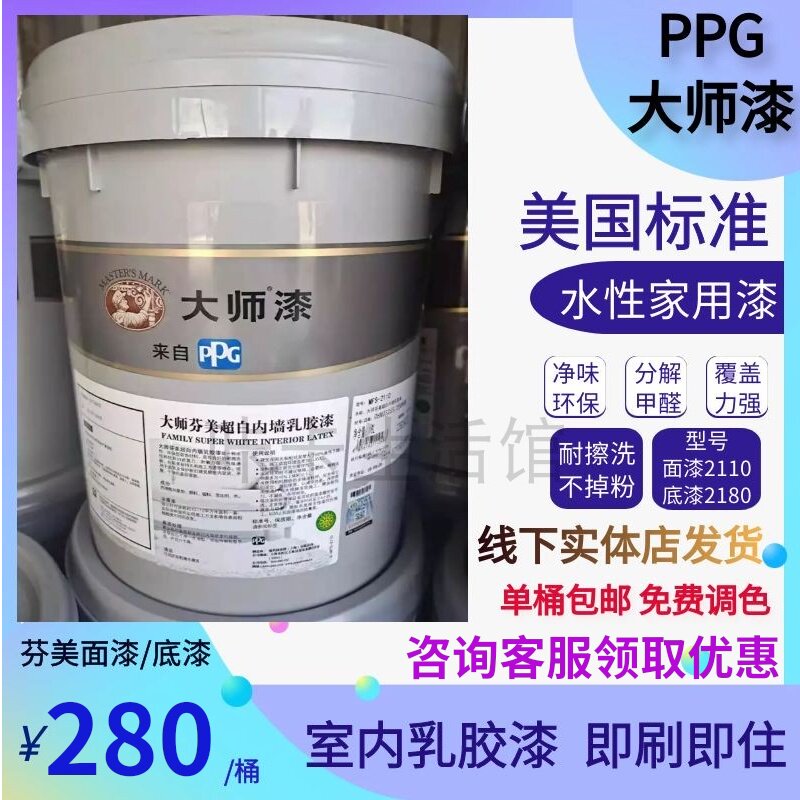 PPG大师漆乳胶漆环保净味芬美面漆18升涂料油漆自刷室内内墙底漆
