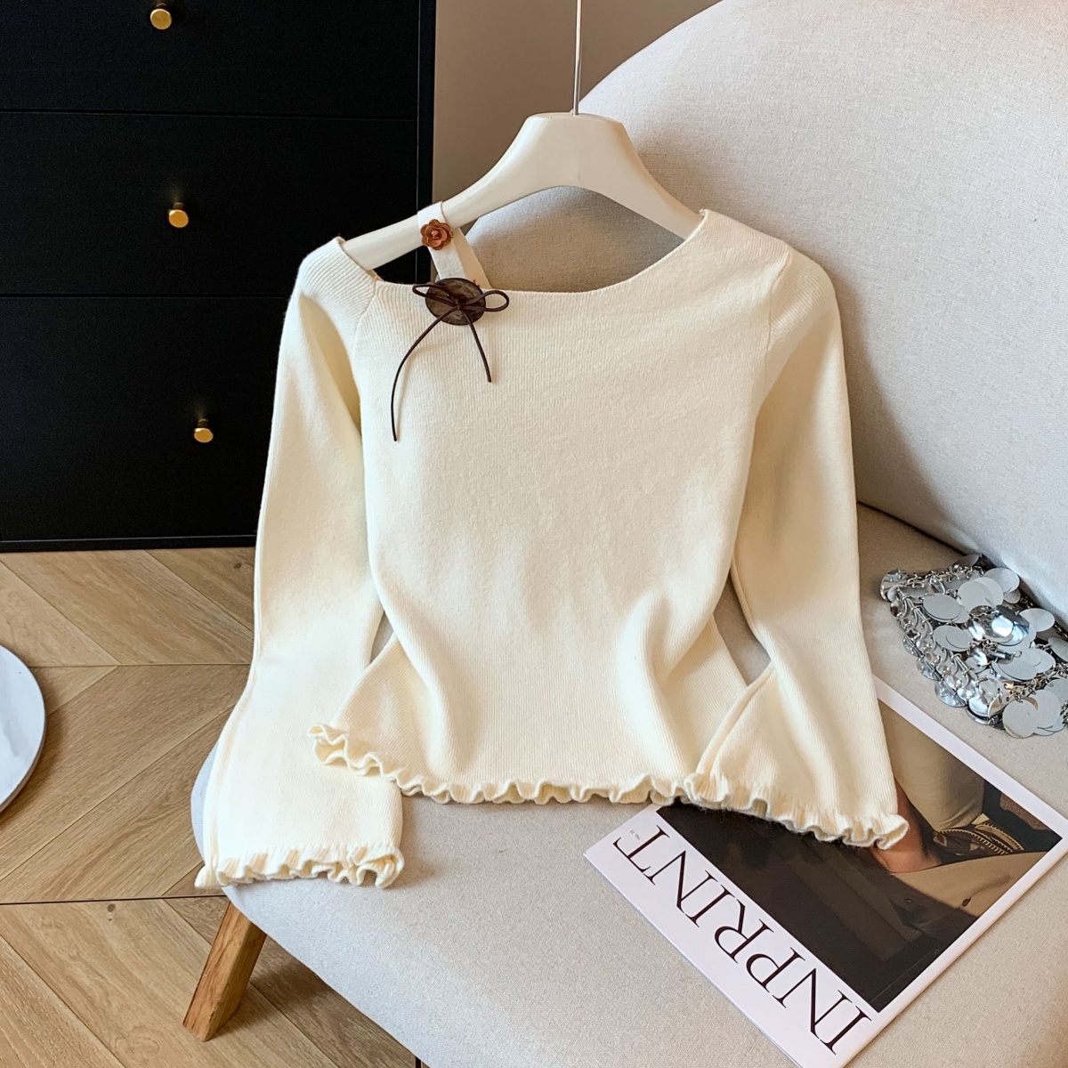 秋季女装小个子加小码XXXS150cm显高露肩毛衣一字领针织打底衫女