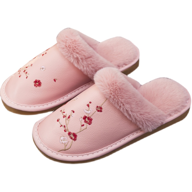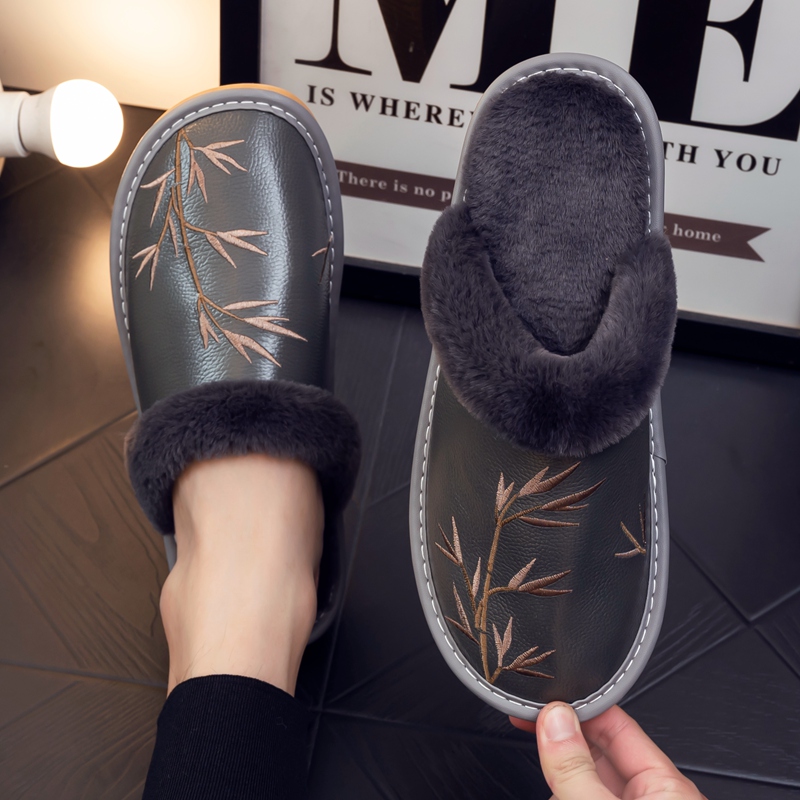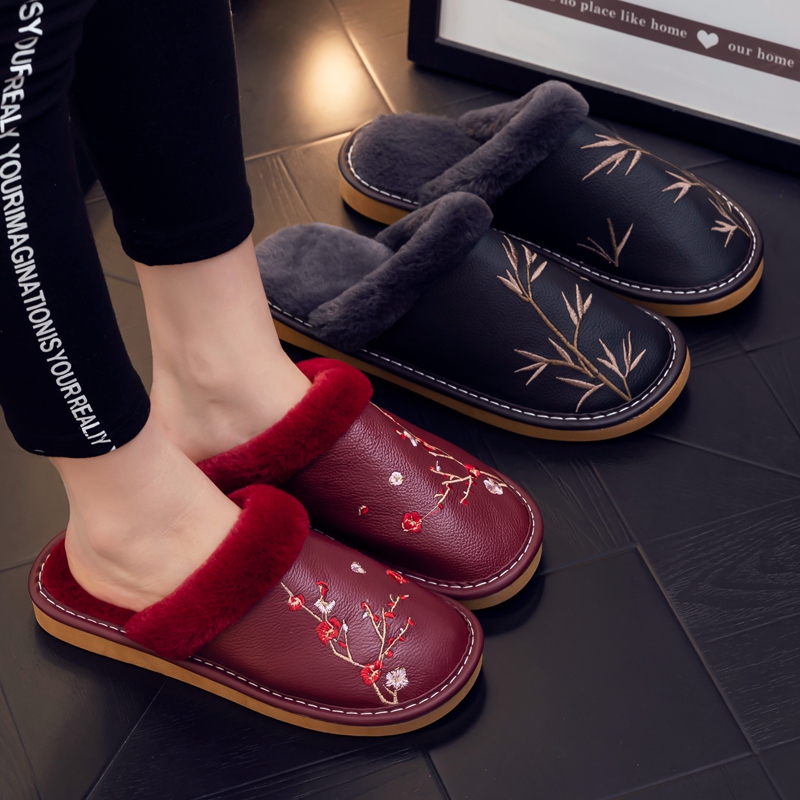 真皮家居棉拖鞋女冬季款男情侣保暖室内家用软底厚底老人防水防滑