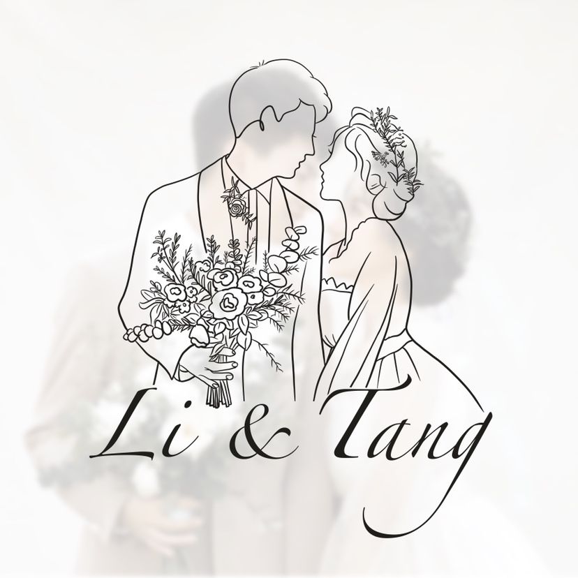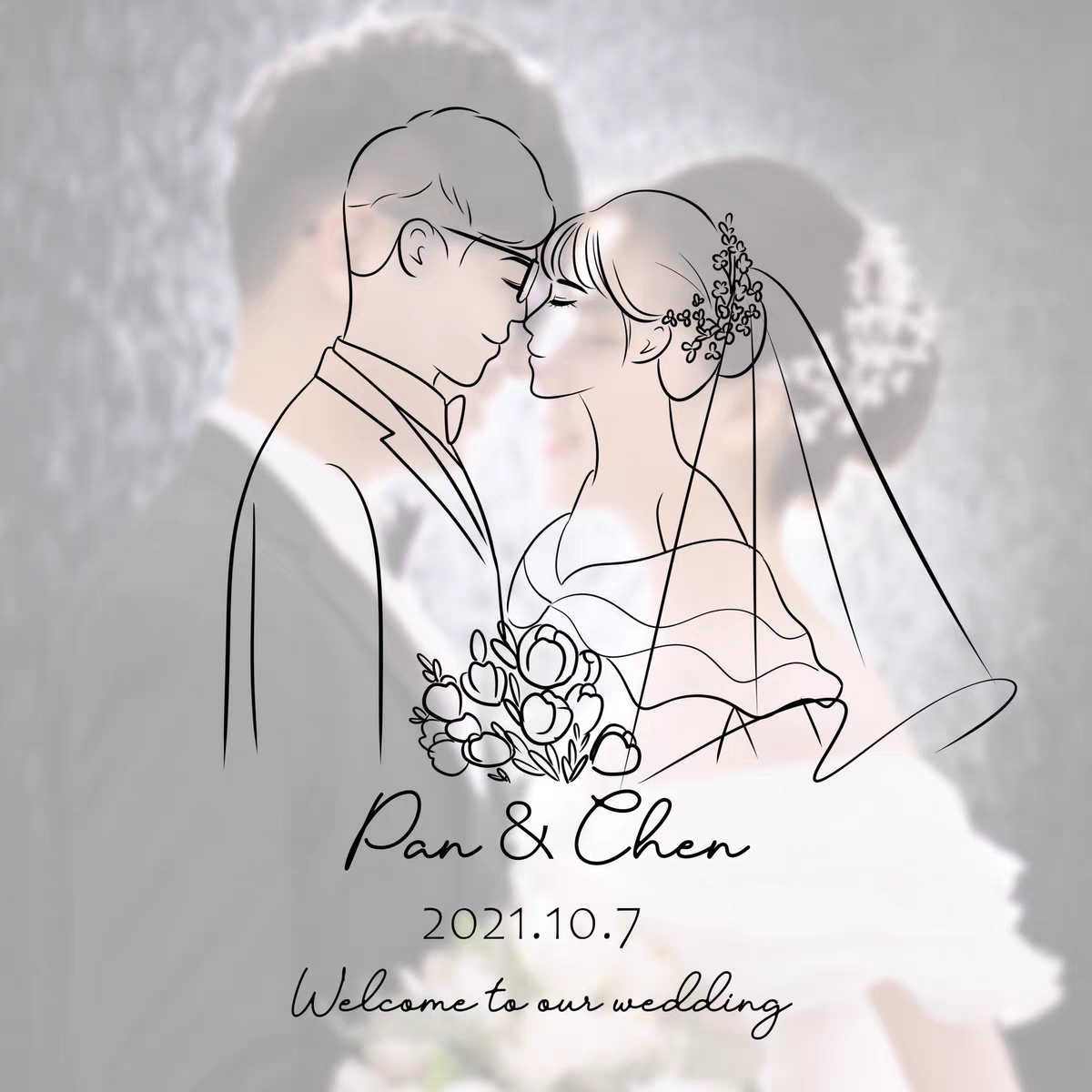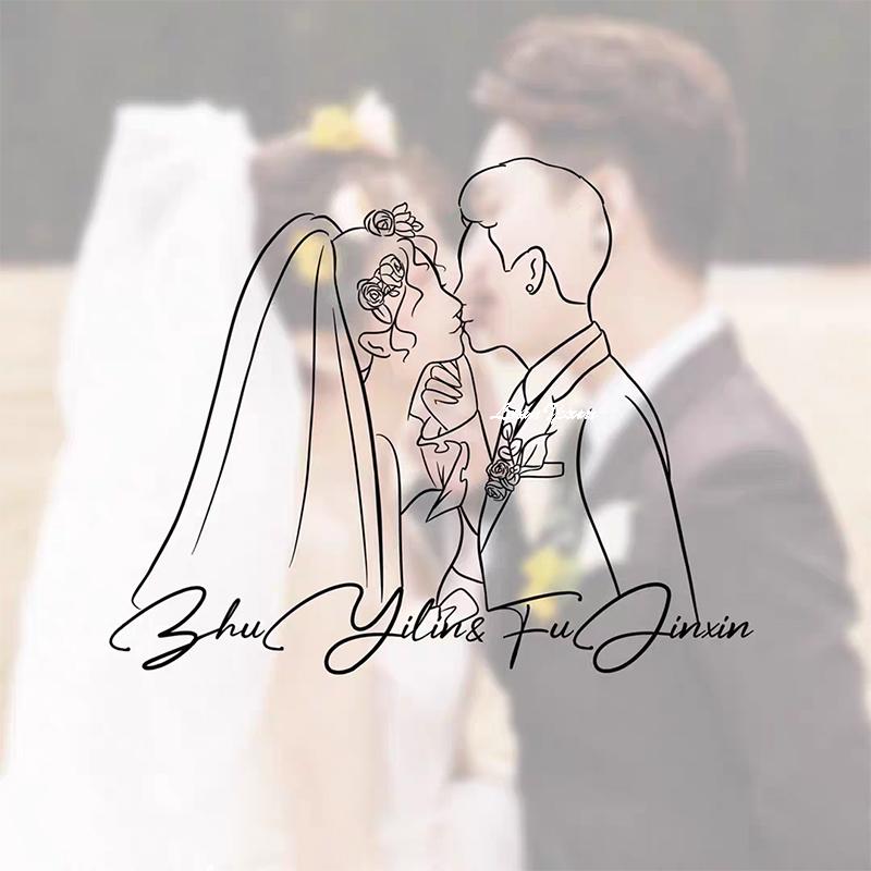 手绘婚礼logo设计简笔画结婚线条剪影轮廓写实手绘婚纱照头像定制