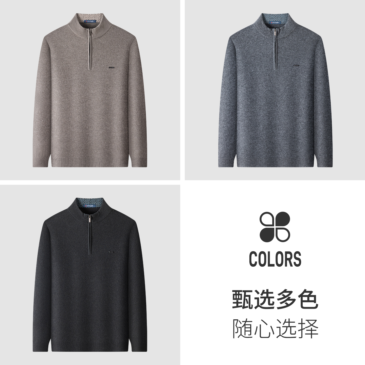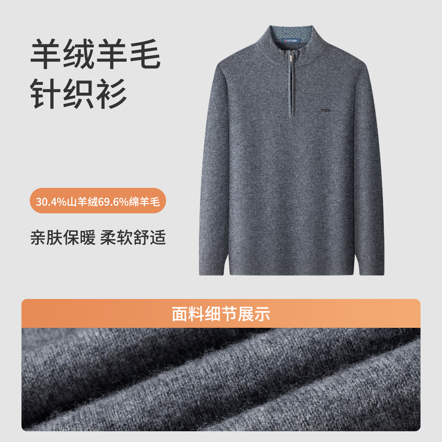 [羊绒羊毛]梦特娇男士羊绒衫冬季拉链高领羊毛衫时尚毛衣厚保暖J