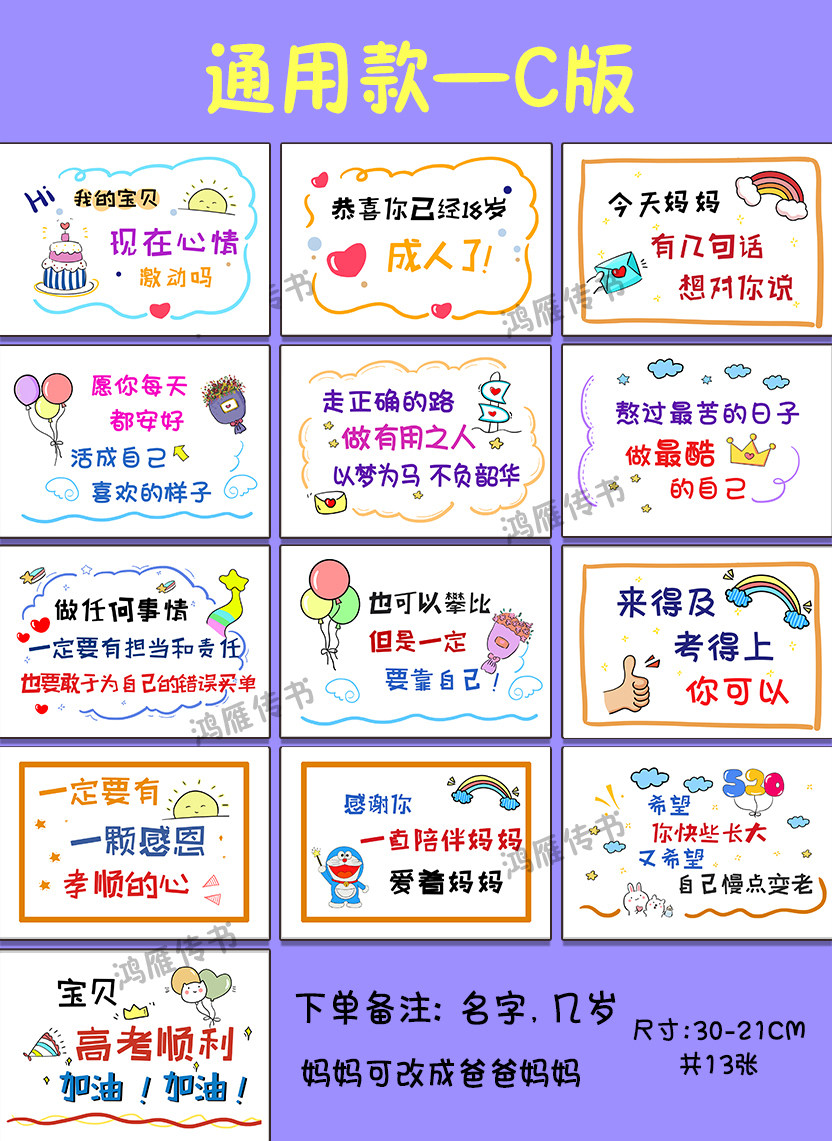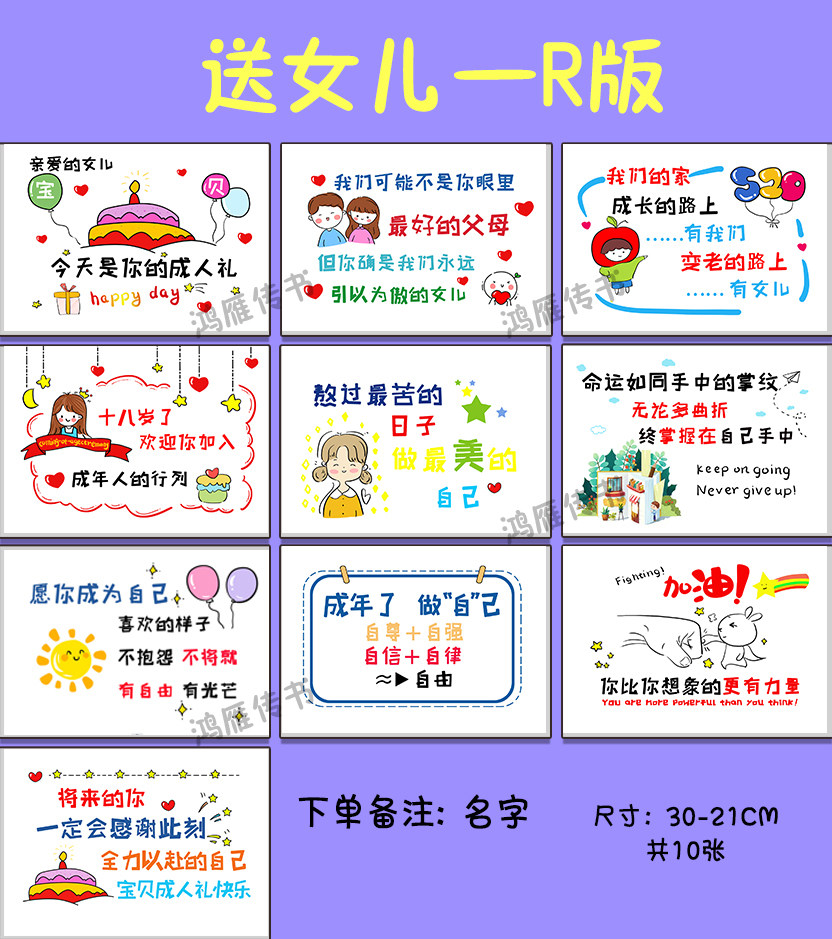 18岁成人礼父母送孩子女儿子学生日高考试加油励志卡片祝福语定制