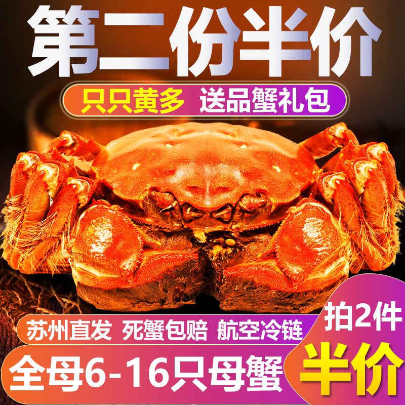 全母苏州螃蟹鲜活大闸蟹礼盒装母蟹新鲜河蟹16-6只可公母湖蟹活蟹