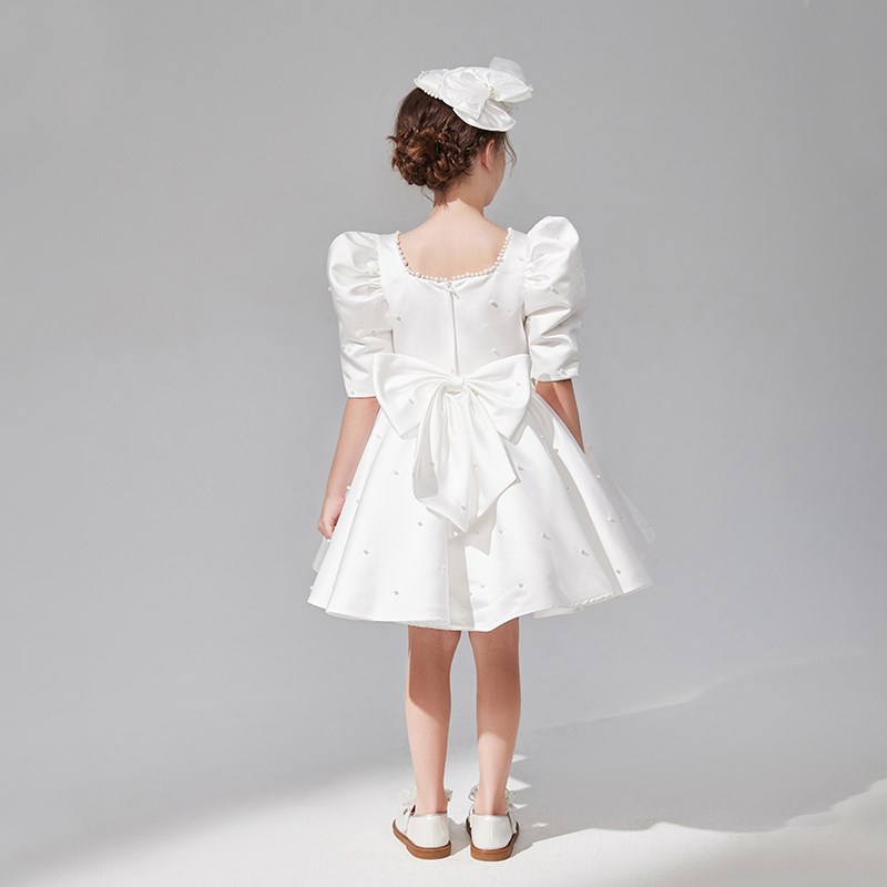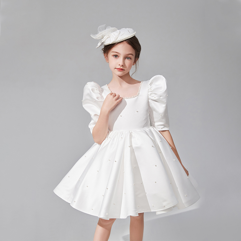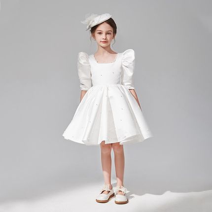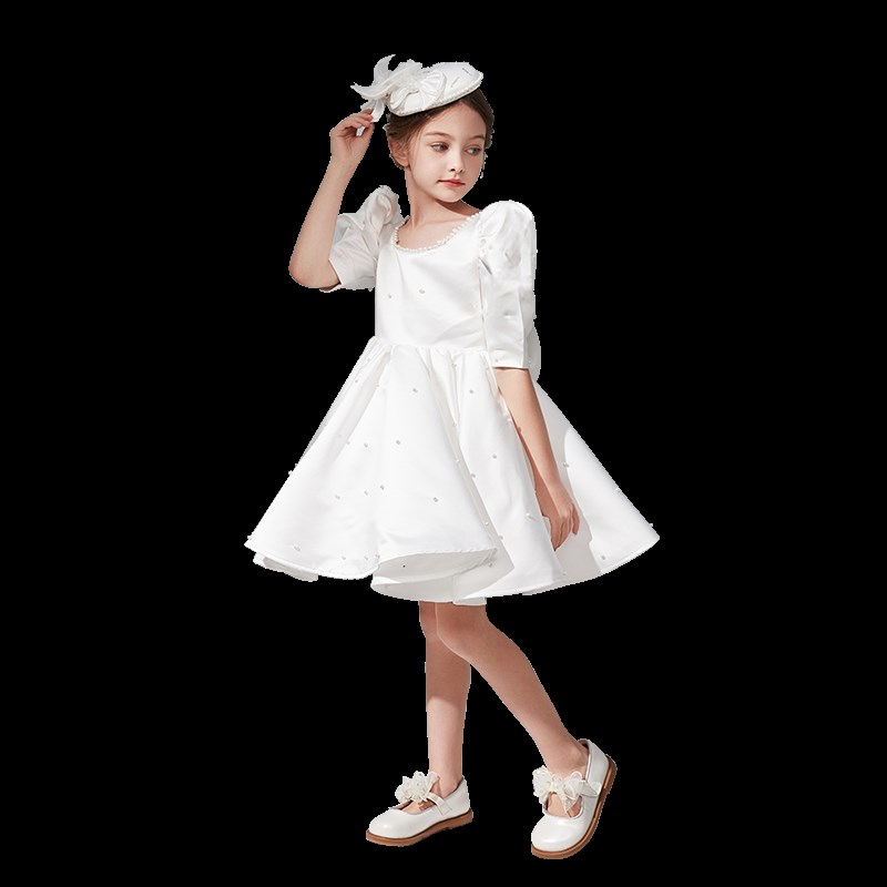 白色女童公主裙礼服花童婚礼小女孩生日周岁蓬蓬裙钢琴演出服春秋