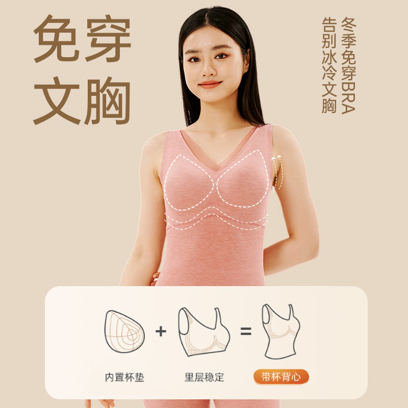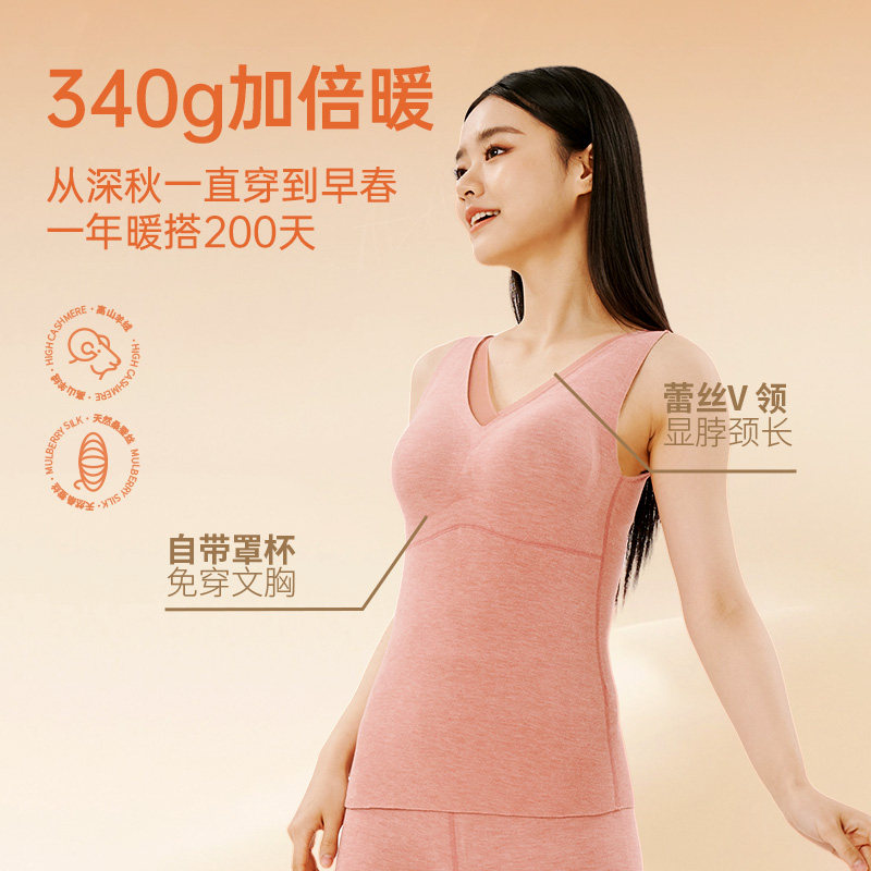 新一系羊绒蚕丝保暖背心女带胸垫加绒加厚秋冬季打底上衣无痕背心
