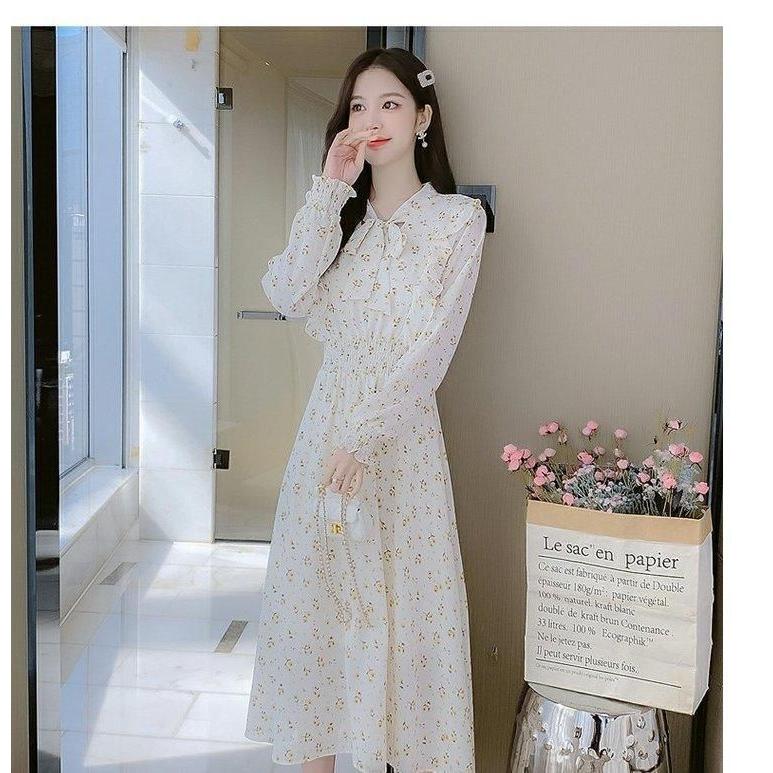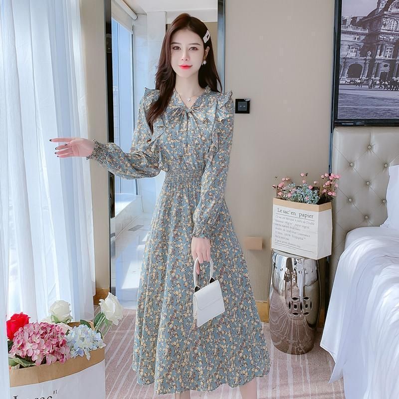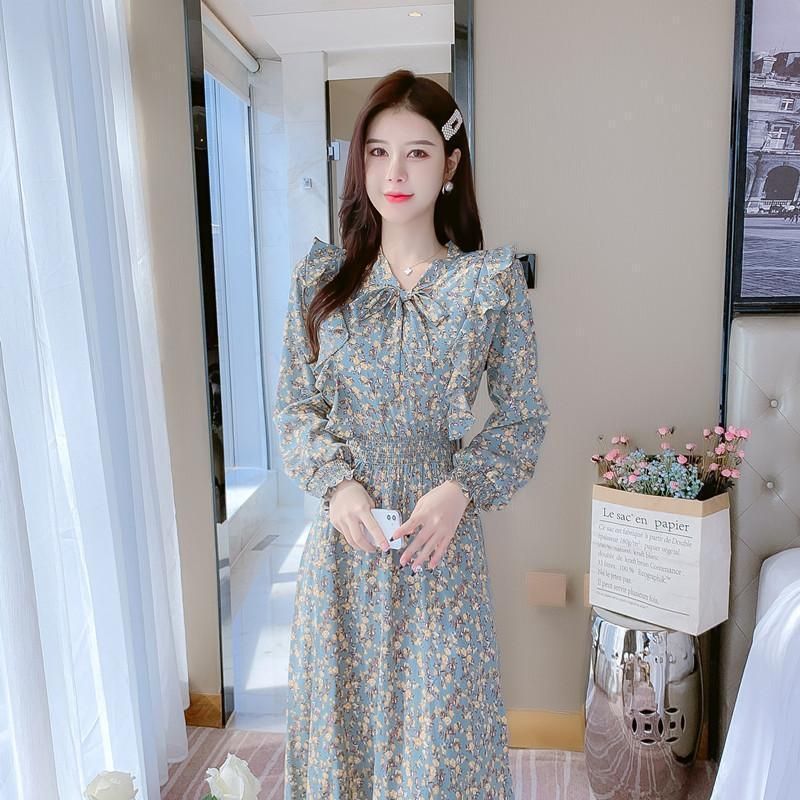 法式碎花连衣裙女春季新款女神范温韩版柔风收腰显瘦约会雪纺长裙