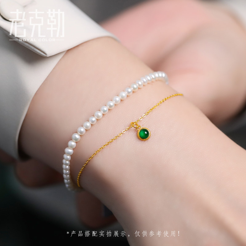 老克勒天然翡翠包金吊坠18K金手链手串项链锁骨链项坠挂坠配饰女