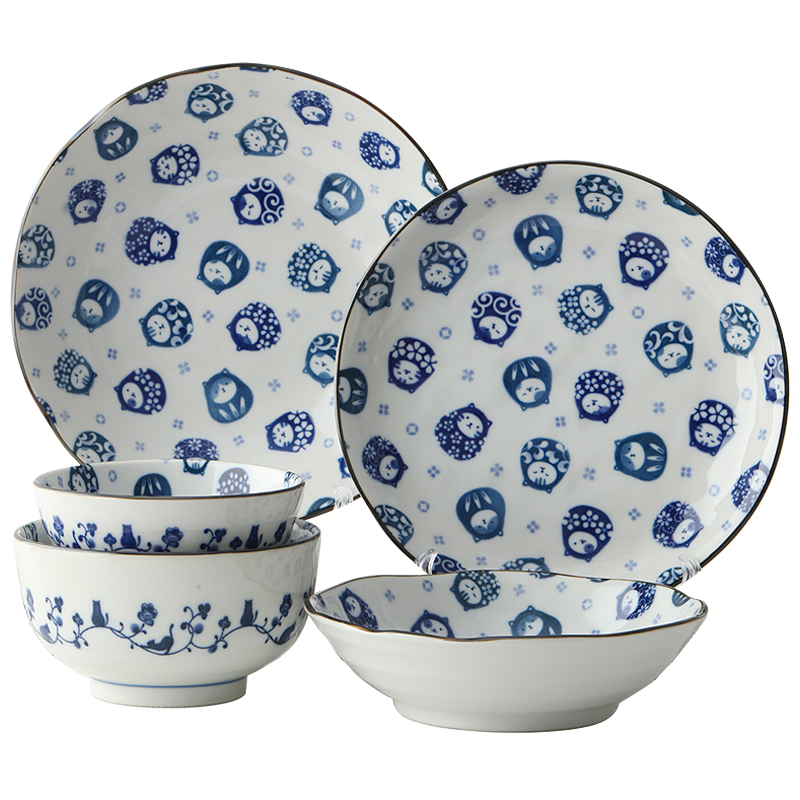 日本进口美浓烧陶瓷餐具猫咪达摩饭碗日式寿司菜盘子碟拉面汤碗