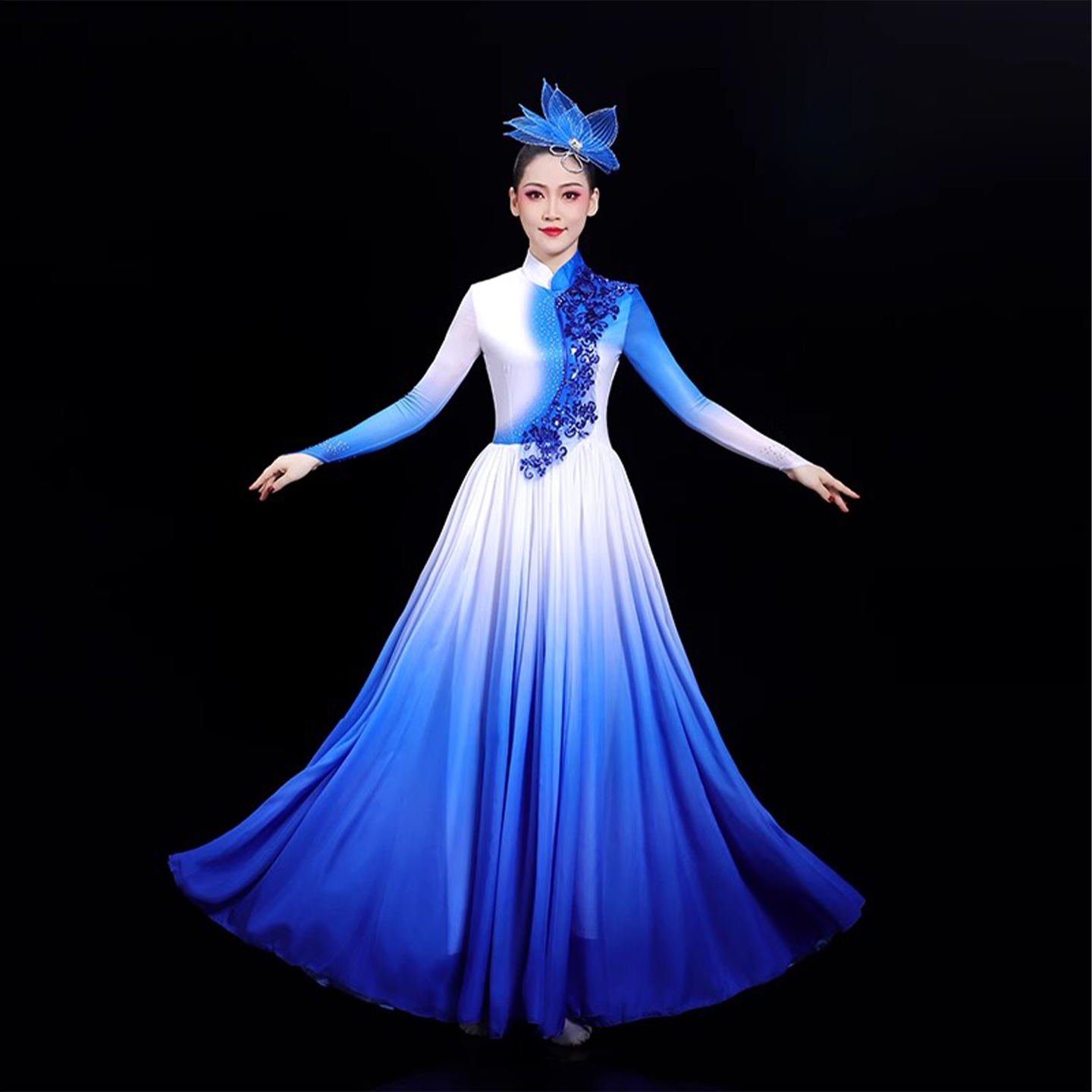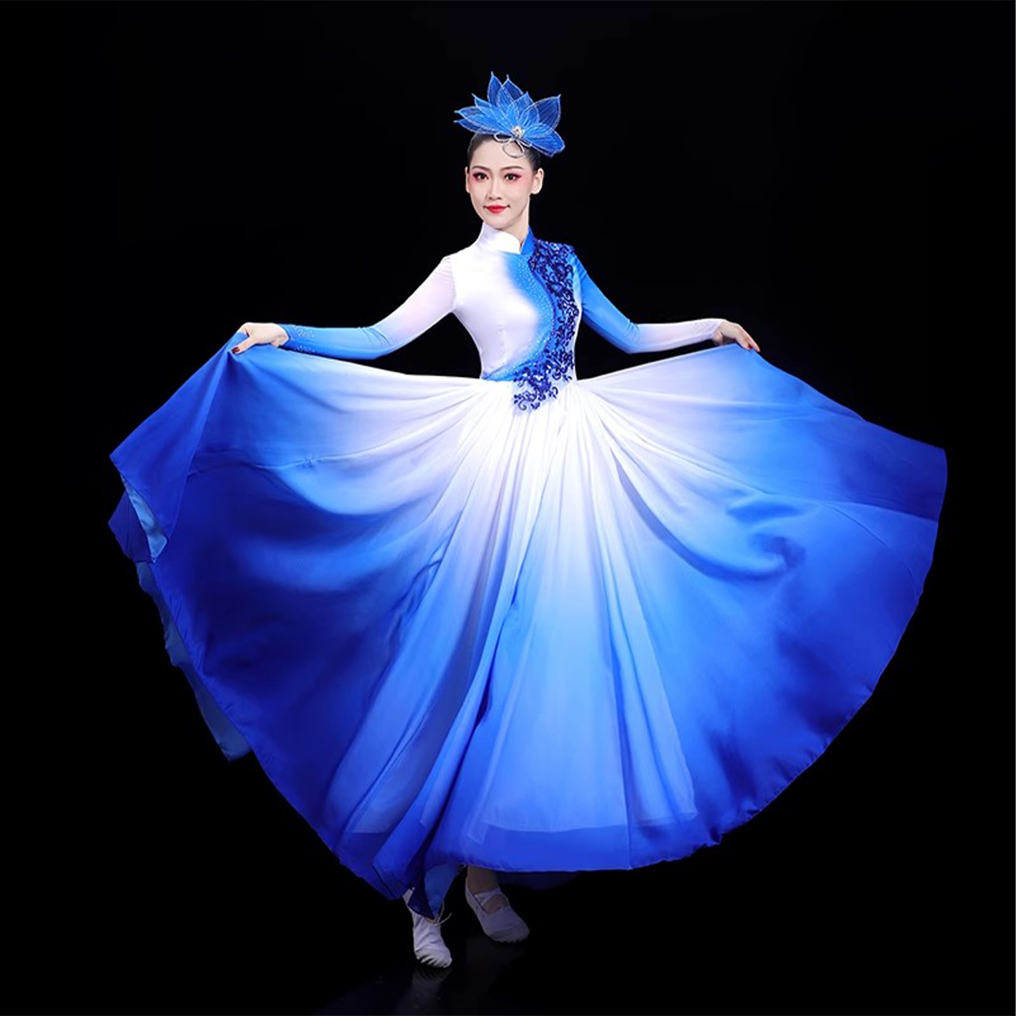 新款开场舞大摆裙现代女大气歌伴舞服装成人大合唱舞蹈表演连衣裙
