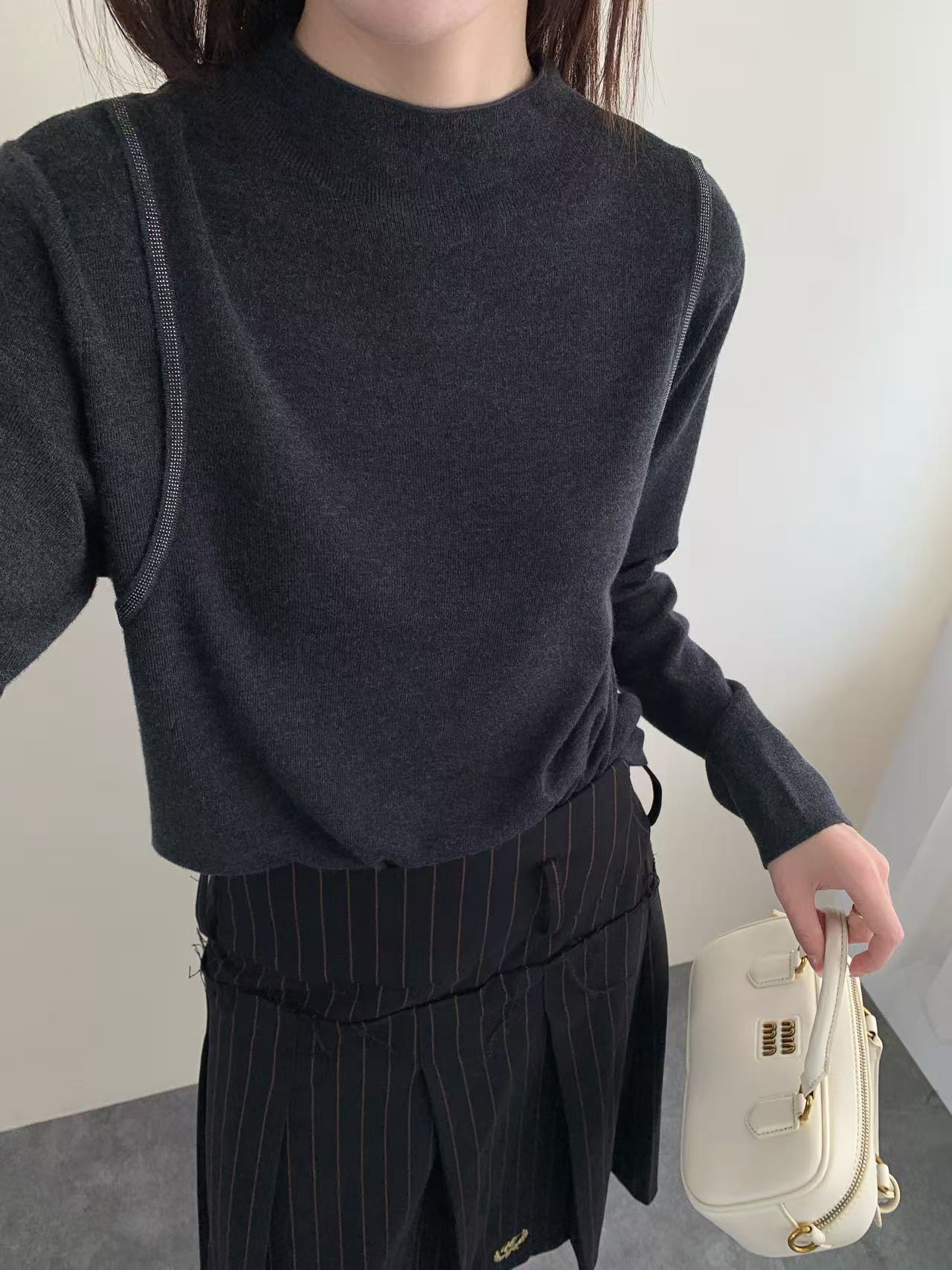 2025秋新款针织衫半高领镶钻羊毛长袖打底衫时尚洋气上衣毛衣女
