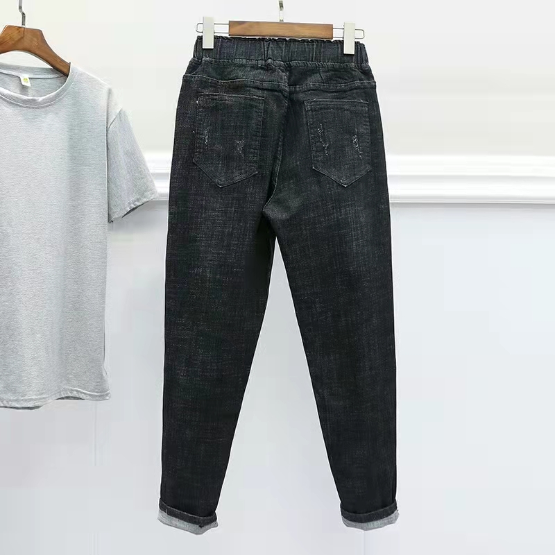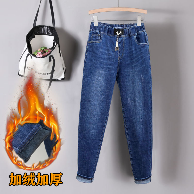 加绒保暖大码牛仔裤女弹力裤哈伦裤200斤高腰加肥韩版胖妹妹长裤