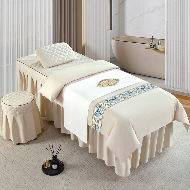美容院床罩按摩推拿床套四件套单件理疗纯色带洞床单简约美体采耳