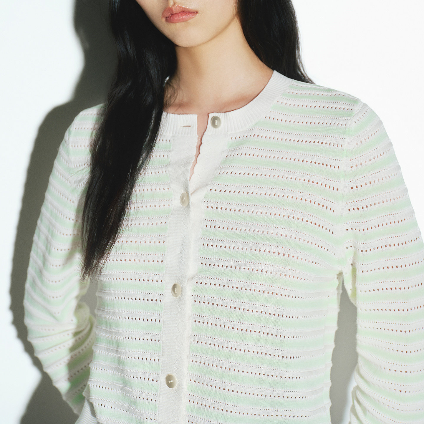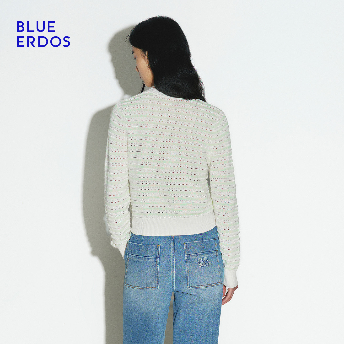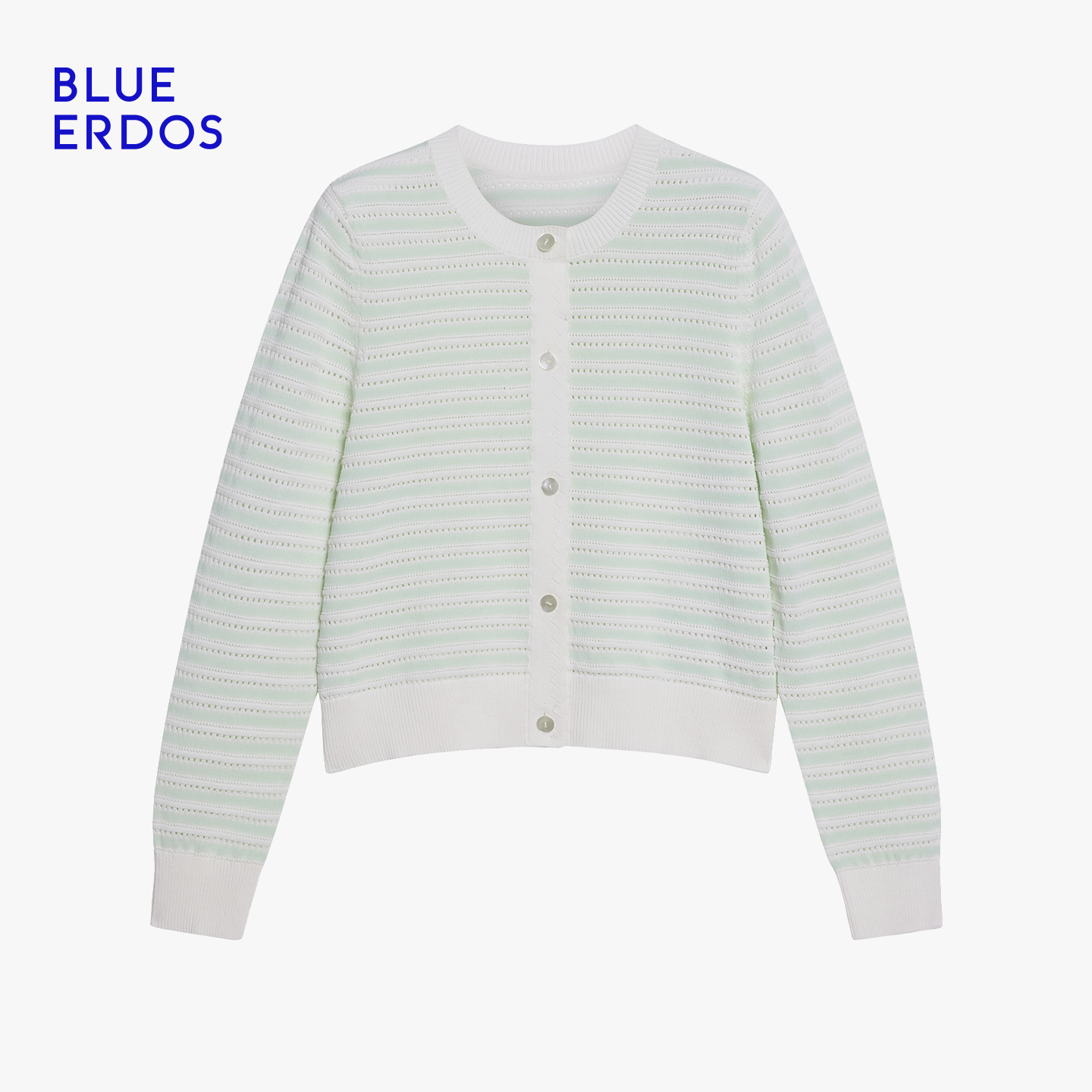 BLUE ERDOS秋冬简约通勤条纹镂空棉蚕丝混纺针织开衫女